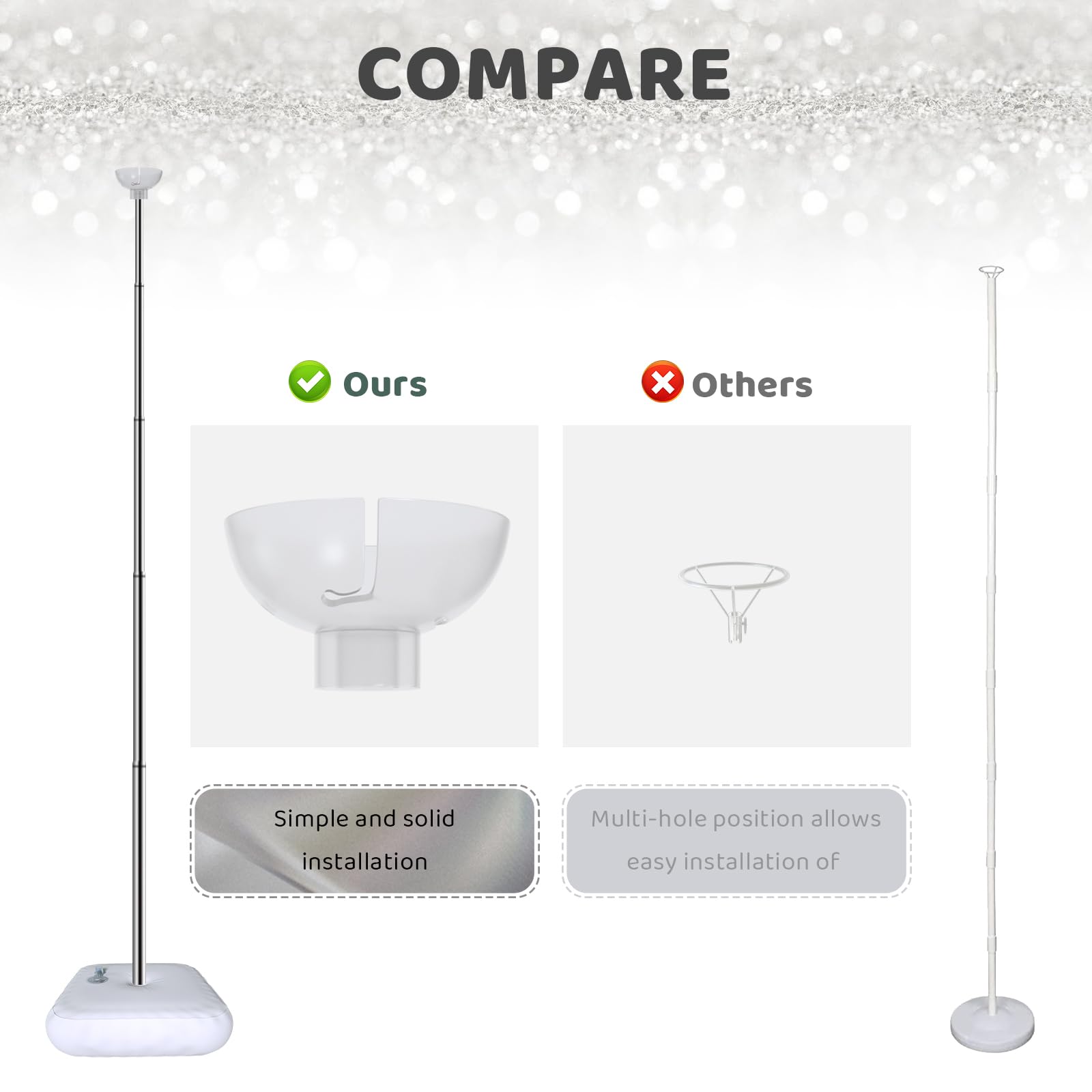 - [Balloon arch kit]- Unlike other balloon column that requires stacking the clear plastic or PVC poles one by one, our balloon column has no complicated fittings and multiple splicing steps