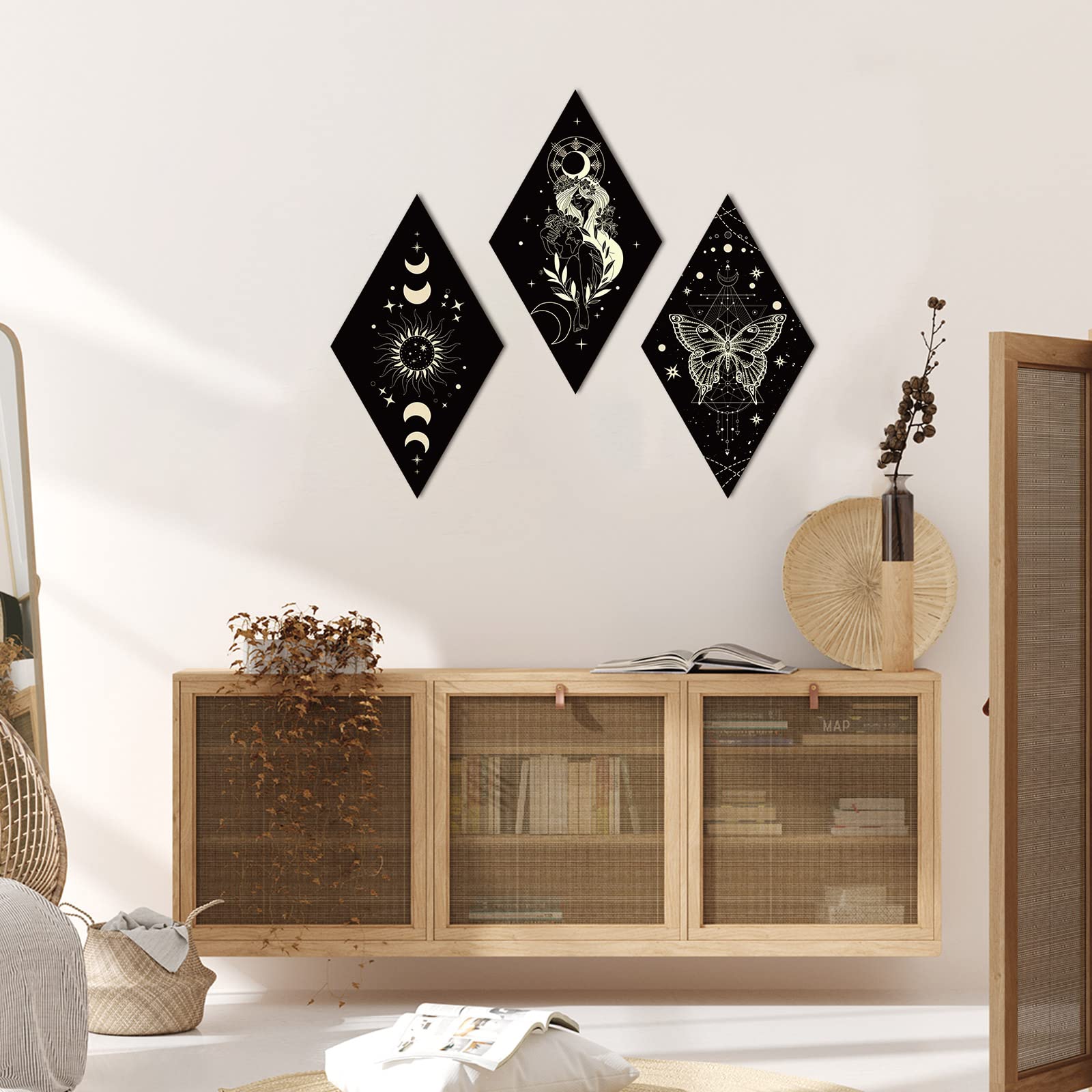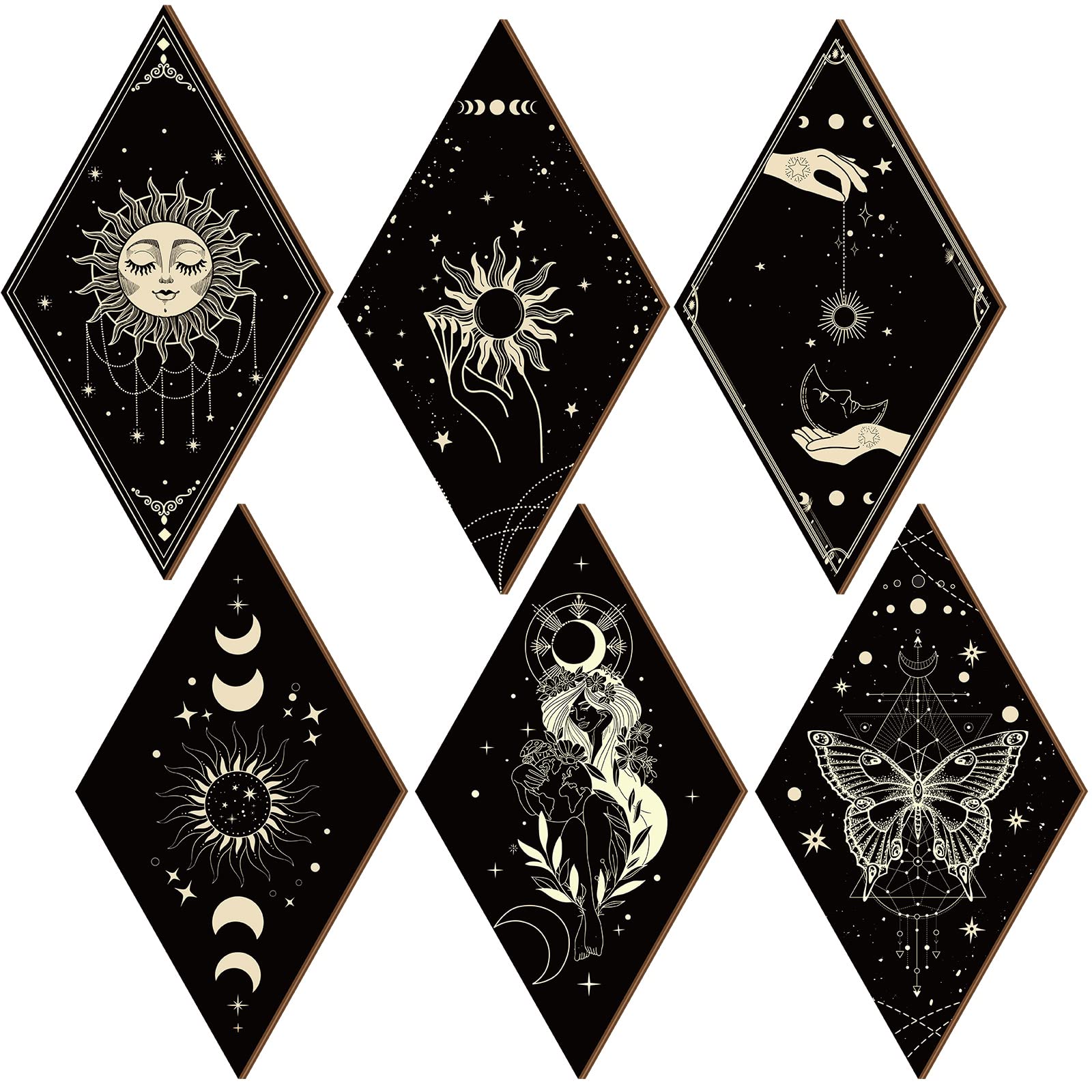 - Available 6 Styles: what you will receive are 6 pieces of moon wall art, designed in 6 different patterns in the theme of sun and moon, mainly colored in black and shaped in rhombus; Sufficient quantities and diverse styles could basically meet your home interior decoration needs