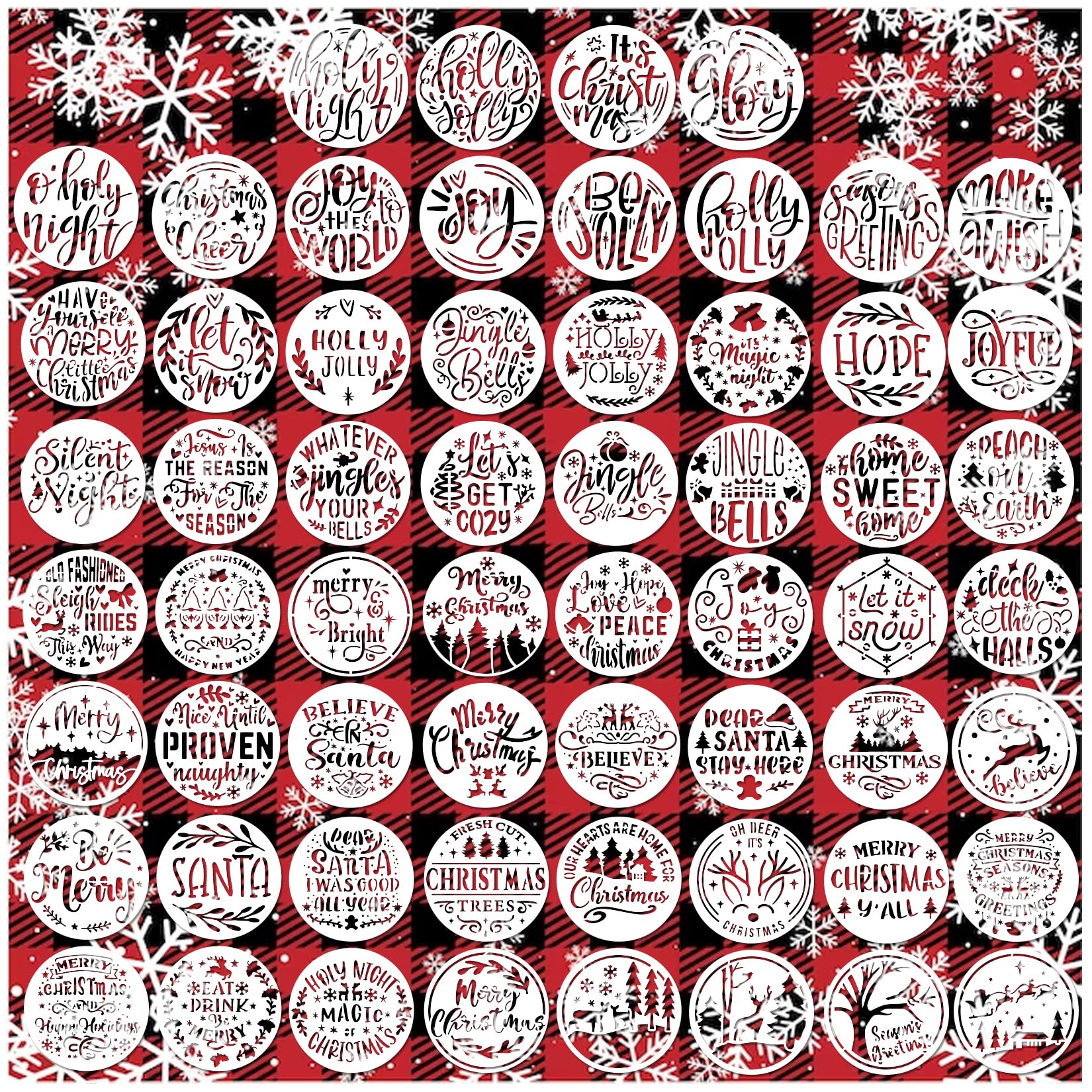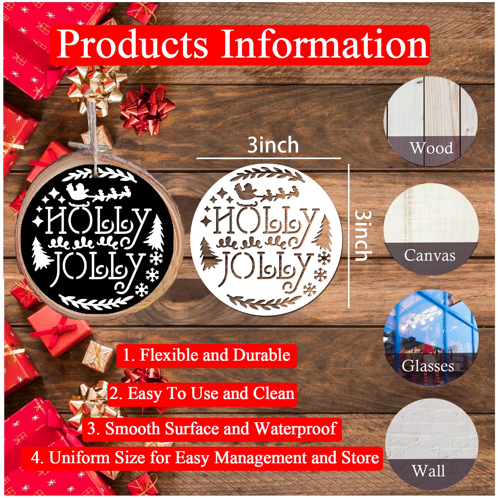 - Small Christmas stencils kit: The package content 60 pieces of round Christmas stencils for painting on wood, each Christmas stencil size measures 3x3inch.
