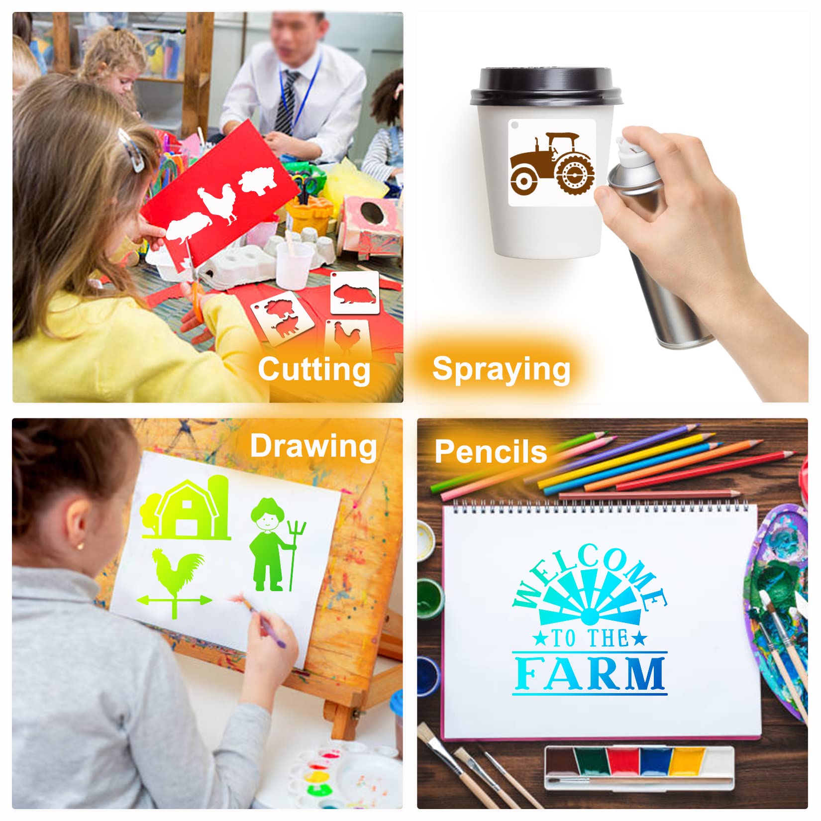 - Theme: Our 3 inch reusable farmhouse animal paint crafts stencil set with various interesting farm animal element, including pig, rabbit, chicken, cow, farm houses and other element, such as mountain, tree, dragonfly, pine tree and more. With them, you can DIY with kids and enjoy the fun of DIY paintin