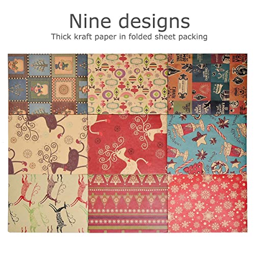 Details: The package includes 10 pack 30"x20" large kraft wrapping paper for Christmas gift packing. Come with 9 different designs to meet your various needs, including Snowman, Christmas tree, Elk, Lantern, Snowflake and more, which also fit for birthday, wedding and other holiday gift wrapping