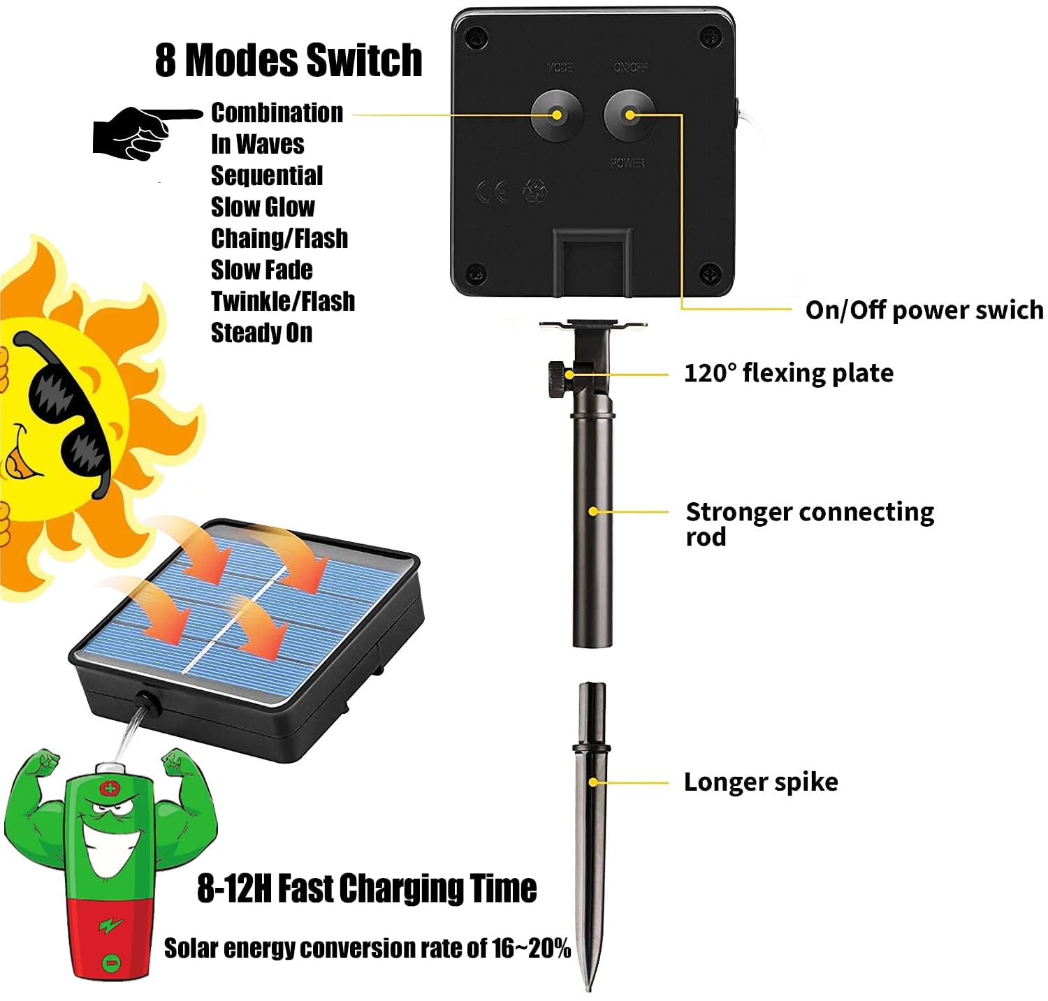 - 💡【Up to 19% High Energy Conversion Rate】Our solar rope lights are equipped with 100 low-heat LED chips, achieving a high energy conversion rate of up to 19%, compared to the industry standard of 13%. These lights are not only environmentally friendly, harnessing endless energy from the sun, but also durable and safe to use. The LEDs will not overheat even after hours of usage.