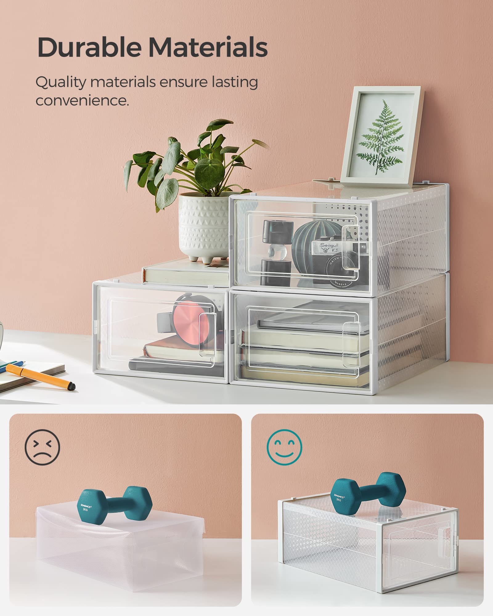 SONGMICS Shoe Boxes, Pack of 12 Shoe Storage Organizers, Stackable Clear Plastic Boxes for Closet, Sneakers, 9.1 x 13.1 x 5.6 Inches, Fit up to US Size 11, Transparent and White ULSP12SWT