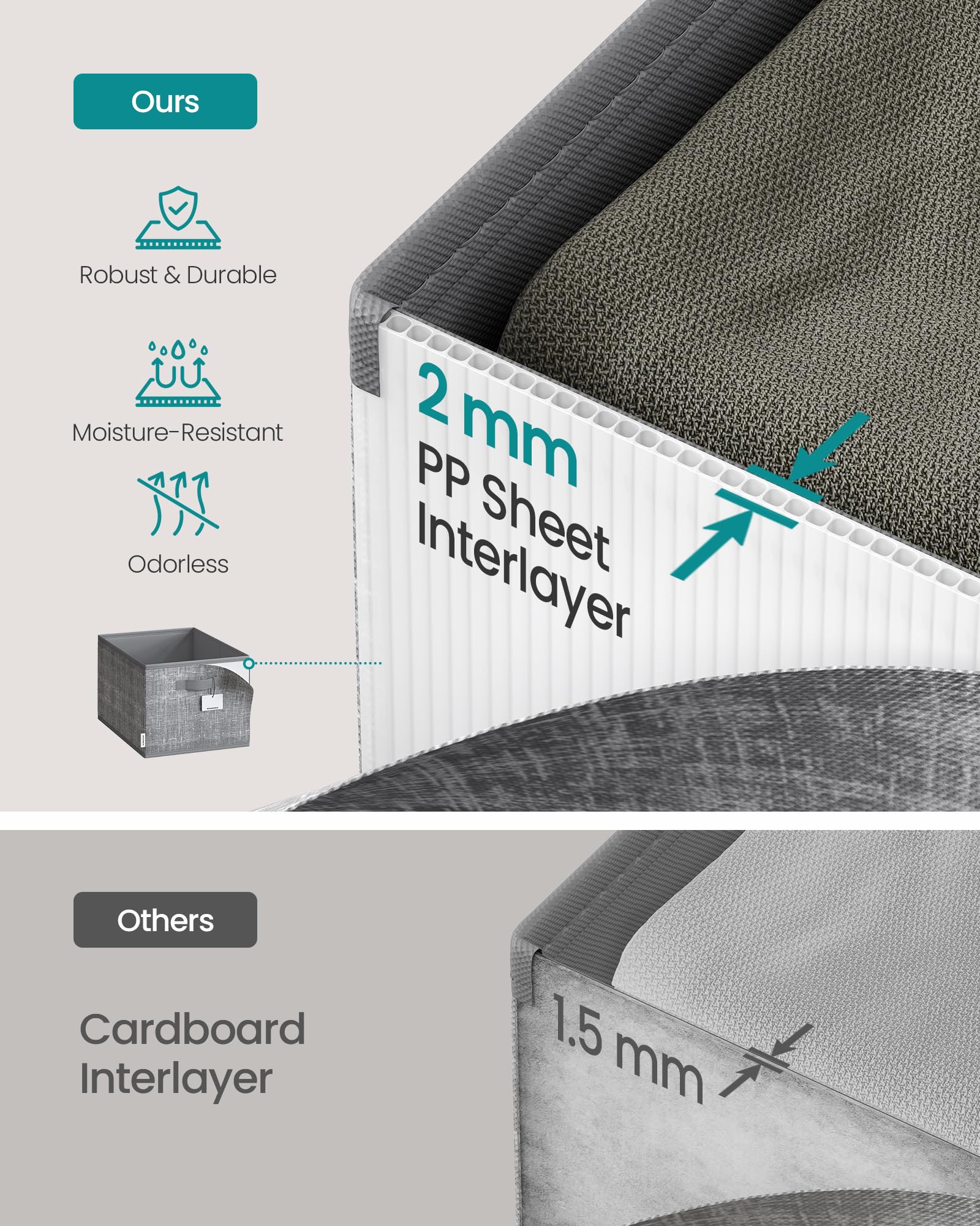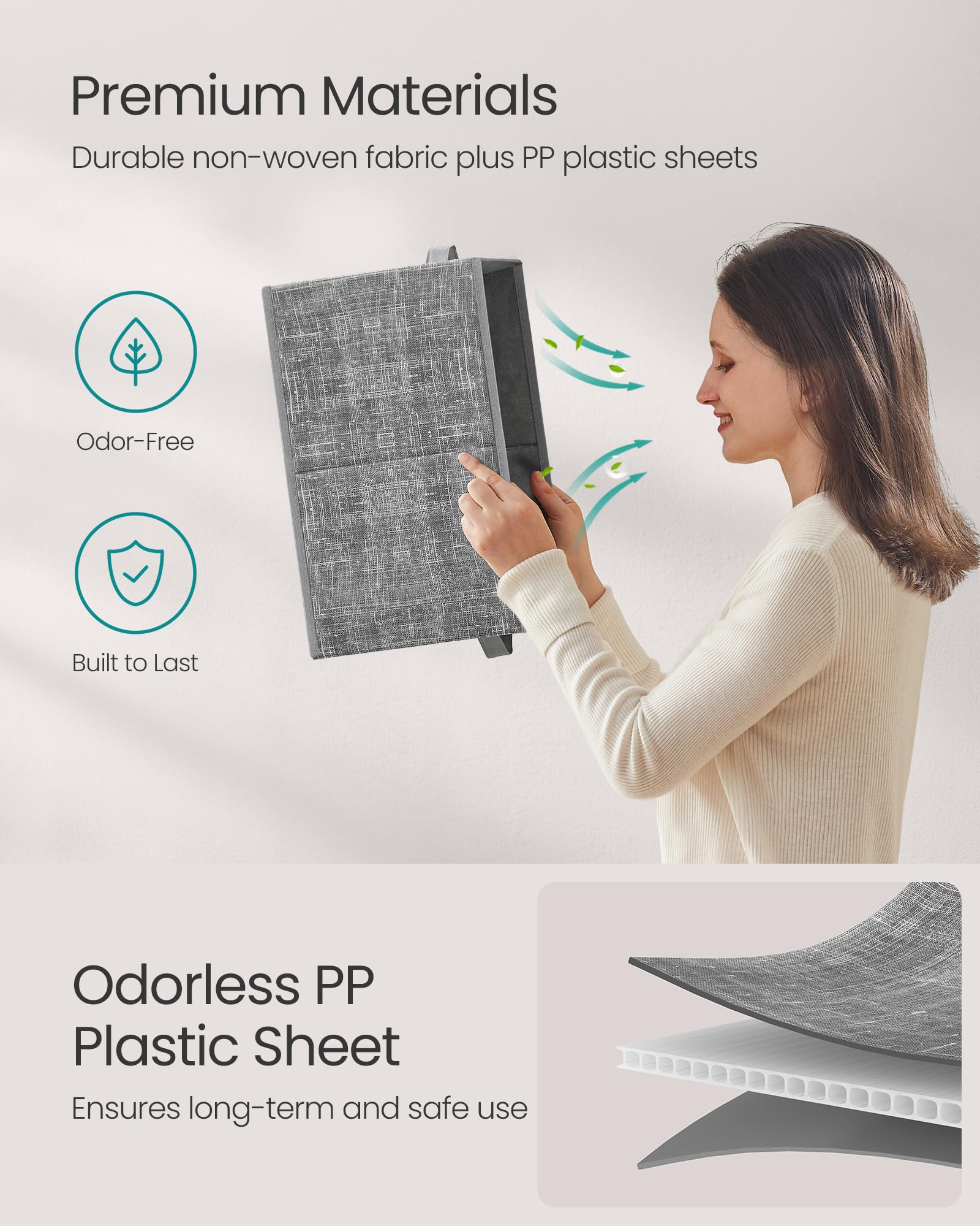 - 【DURABLE AND ODORLESS】Made of sturdy non-woven fabric and odor-free PP plastic sheets, these fabric storage bins are ready to withstand regular use and ensure a fresh storage space