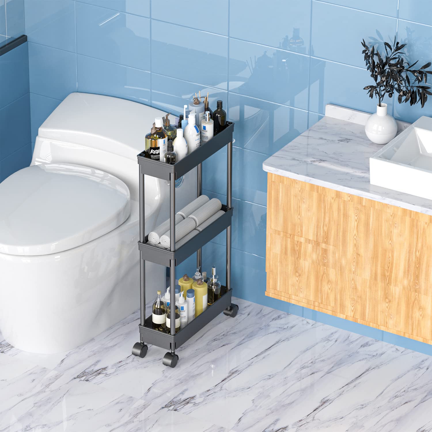 - 【Stylish Design】Our mesh utility storage cart has a slim body and there are 3 colors to choose, dark black, gray, white. They are easy to fit any style rooms. It is not only functional but also can be decorative.