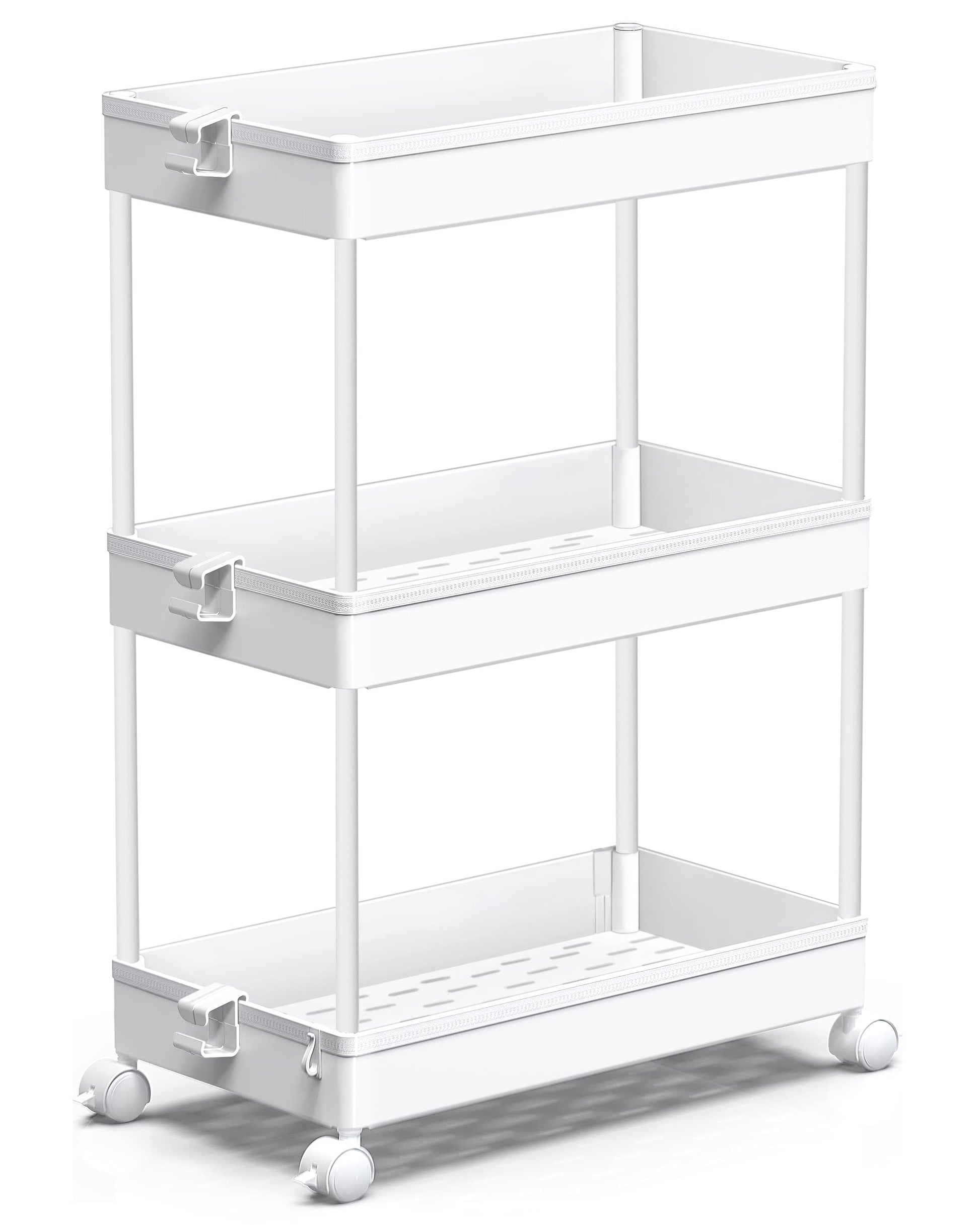 - 【2 or 3 Shelves Adjustable】- The rolling storage cart can be adjusted to 2 or 3 shelves for bathroom and kitchen countertops without the casters, so wide range of applications