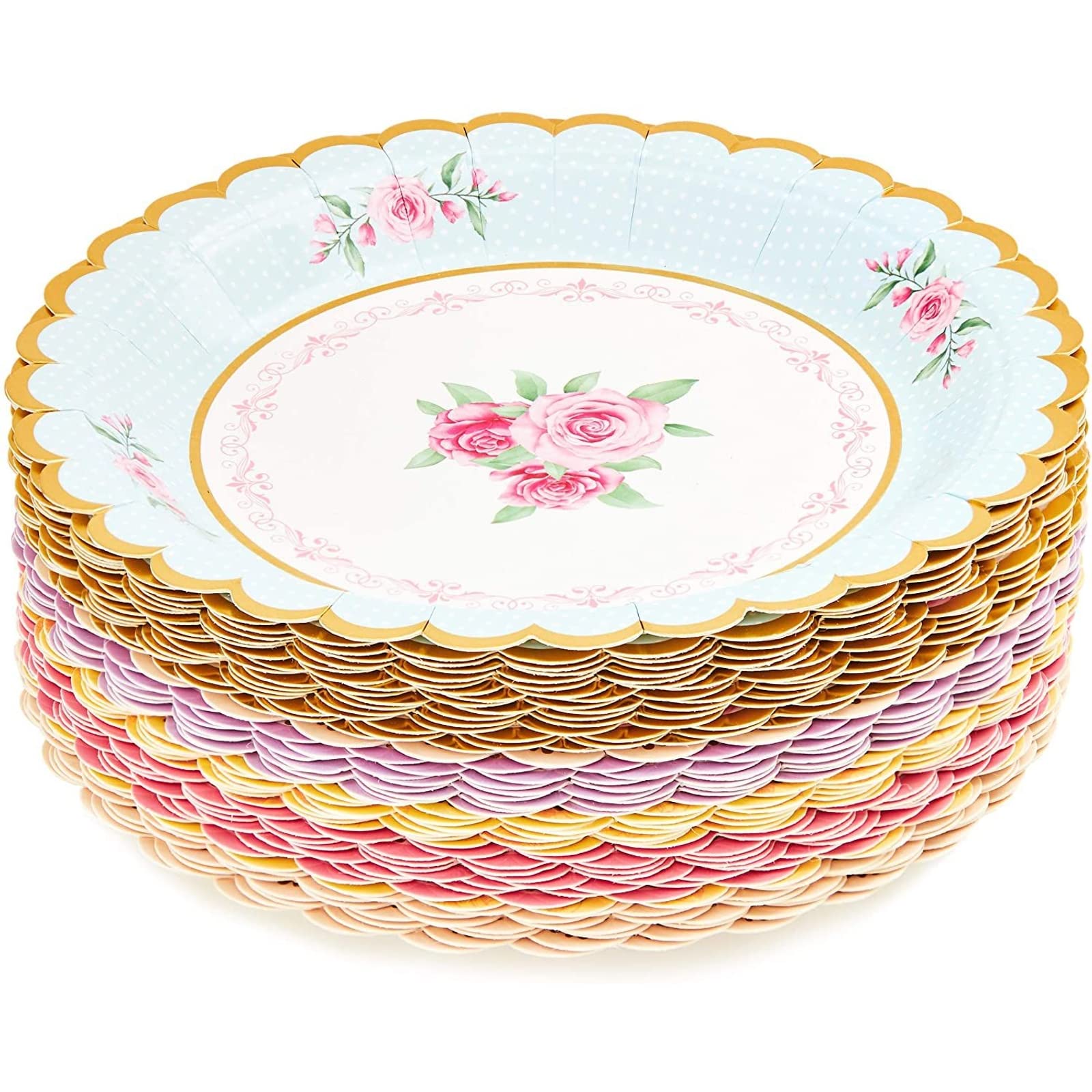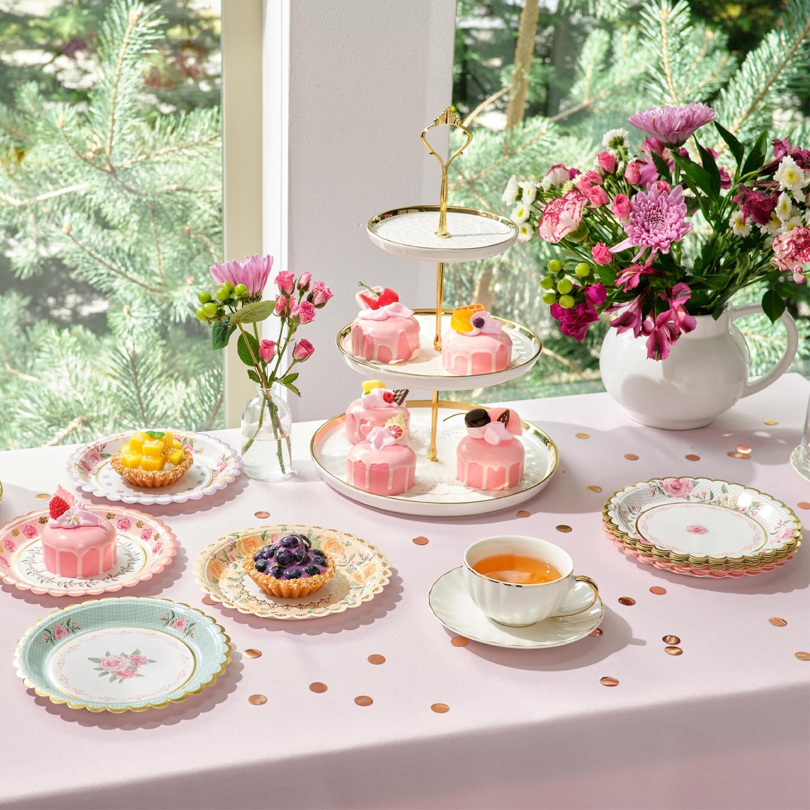 - Elegant Floral Plates: Includes 48 tea party plates; perfect for adding charm to your dining table setting or using at the buffet and dessert table