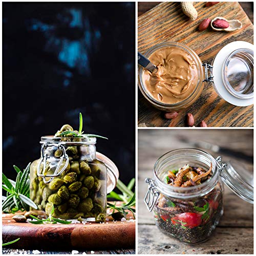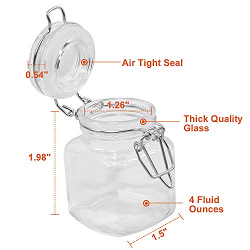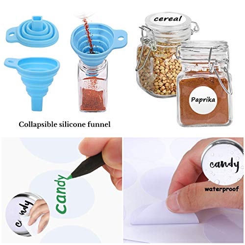 Spice Jars, SPANLA 12 Pack 4oz Small Glass Jars with Airtight Hinged Lid, With 12 Spice Labels & Silicone Funnels, Airtight Glass Jars for Spices, Art Craft Storage (12 Pack)