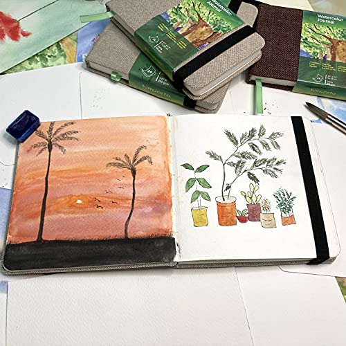 Square Watercolor Journal, 5.5x5.5”, 140 LB, 300 GSM, tumuarta Cotton Paper, Cold Press, 24 Sheets, 48 Pages, Watercolor Paper Sketch Books for Use As Mix Media Pad On The Go