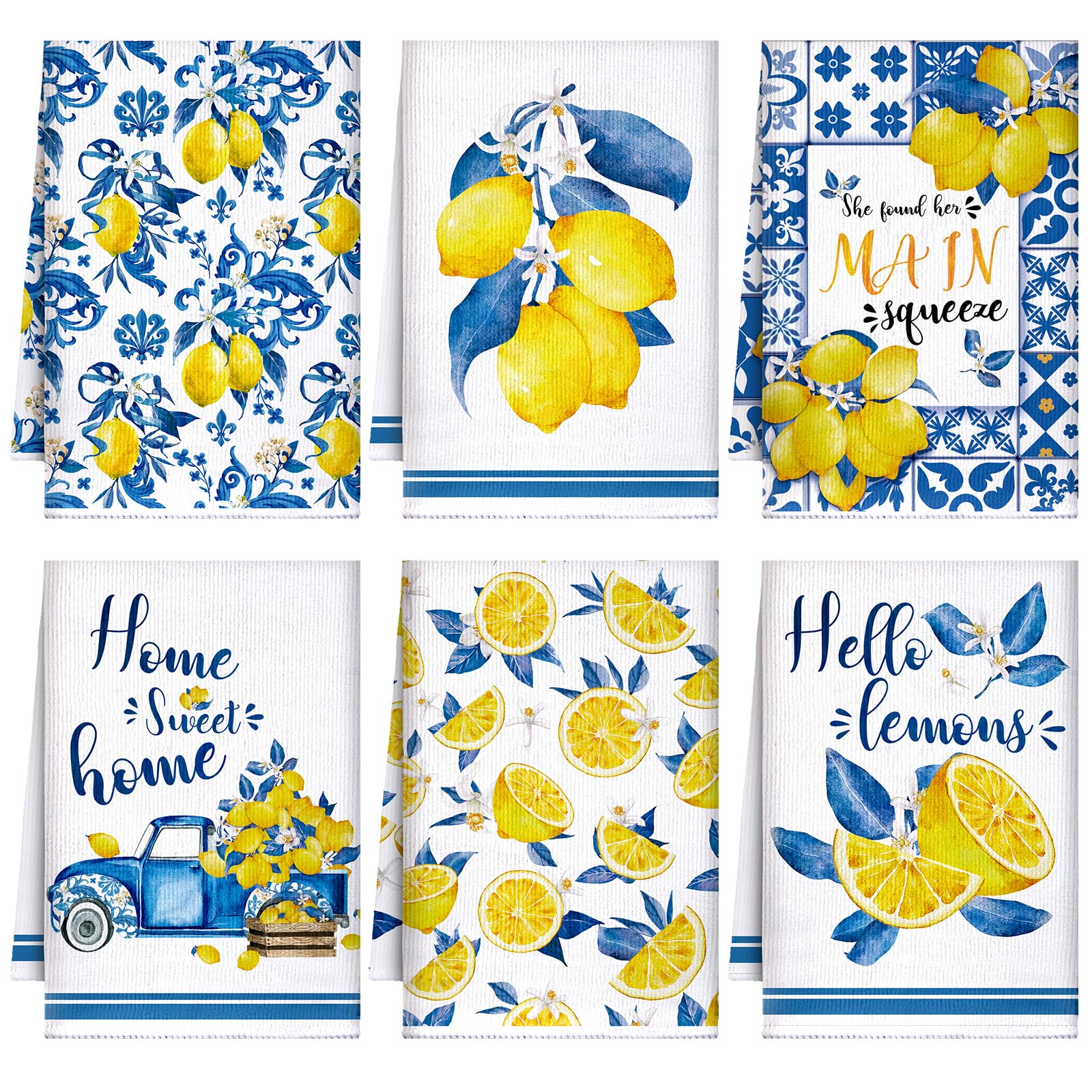 - Package Including: our package contains a total of 6 different styles of delicate kitchen towels; The ample quantity and variety of blue lemon patterns can meet your daily needs, and you can use it as a kitchen wipe