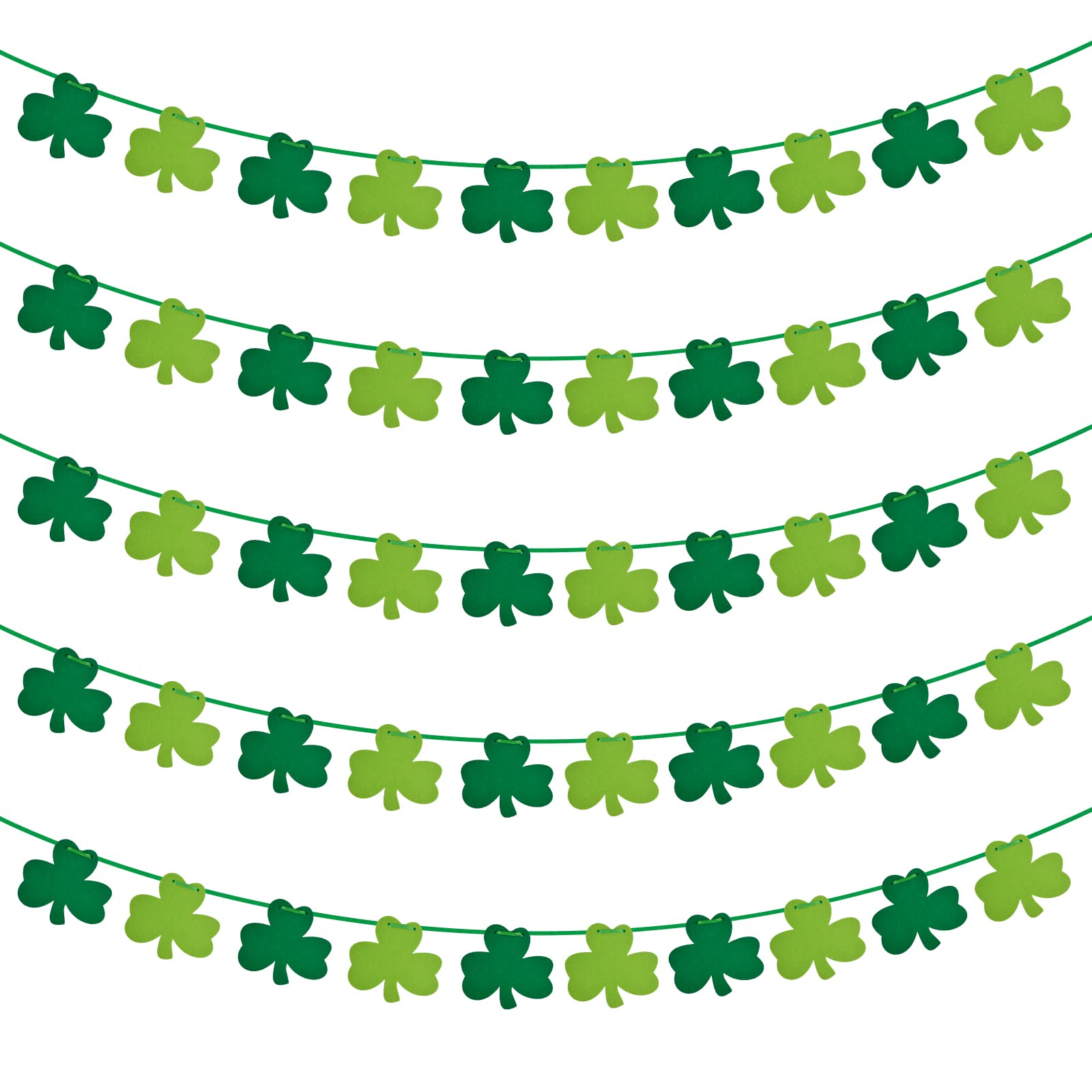 - Pack of 5 Shamrock Clover felt:There are 10 Shamrock Clover felts on each string,including 5 dark green and 5 light green.Our Shamrock Clover banners are 5 pack so they are enough to decorate your house and make you more memorable on special day!