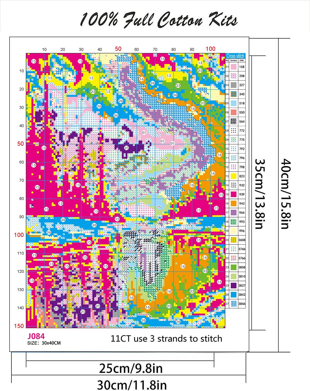 - SIZE AND PACKAGE:11.8x15.8inch,2pc cross stitch needles, enough thread already sorted, English instructions,cross stitch patterns instructions,and 11CT Pre-printed stamped cross stitch fabric cloth.: