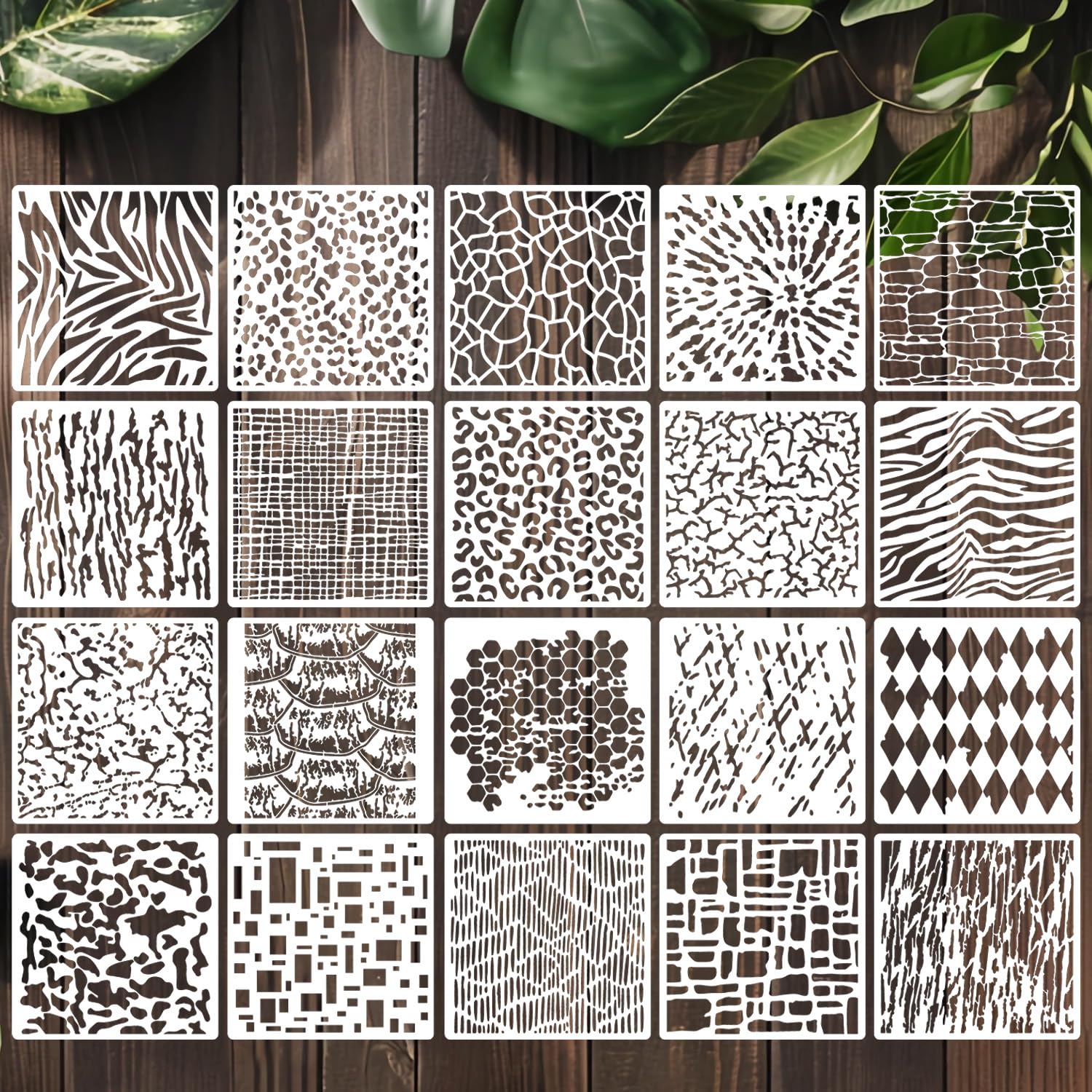 - Texture Stencils:Patterns including brick,honeycomb,camo design are suitable for layering textures to your projects. Use these stencils for crafts to layer inks, paints, stains.Great for Mixed Media, Paper Arts, Stenciling, Card making, Scrap booking, Sponging, Spraying, Spritzing, Chalking and more!