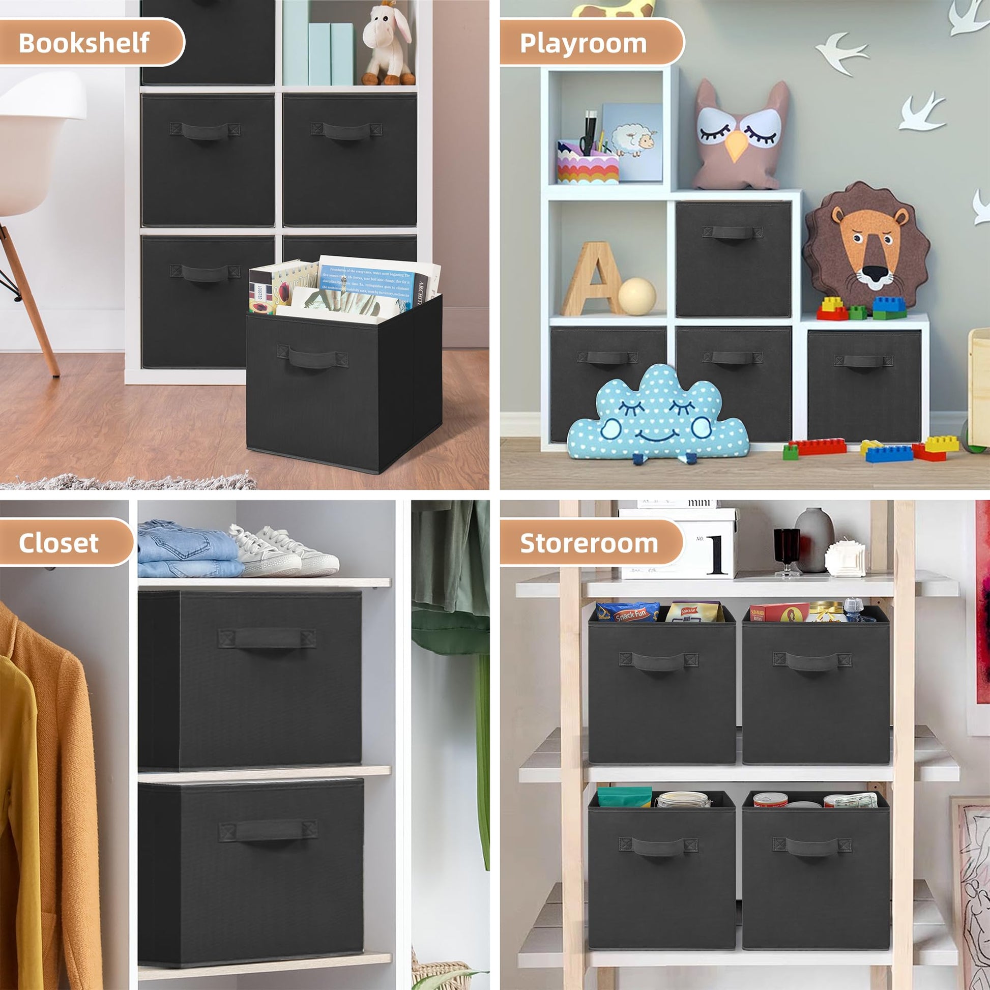 STORAGE MANIAC Storage Cubes, 11 Inch Durable 6 Pack Fabric Foldable Collapsible Bins with Handles for Organization, Closet, Shelves, Offices, Toys, Black