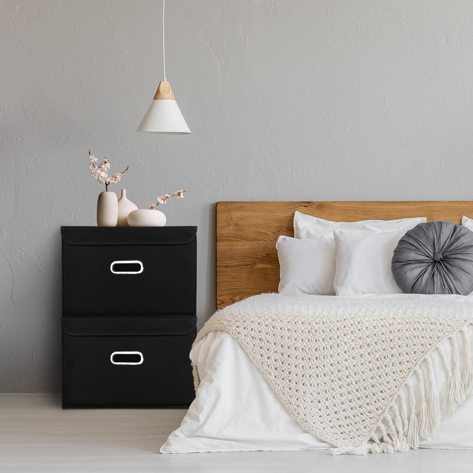 STOREONE Fabric Storage Cube Bins Foldable Organizer Container Collapsible Basket with Lids and Metal Handles, for Home, Bedroom, Closet (Black, 3 Pcs)