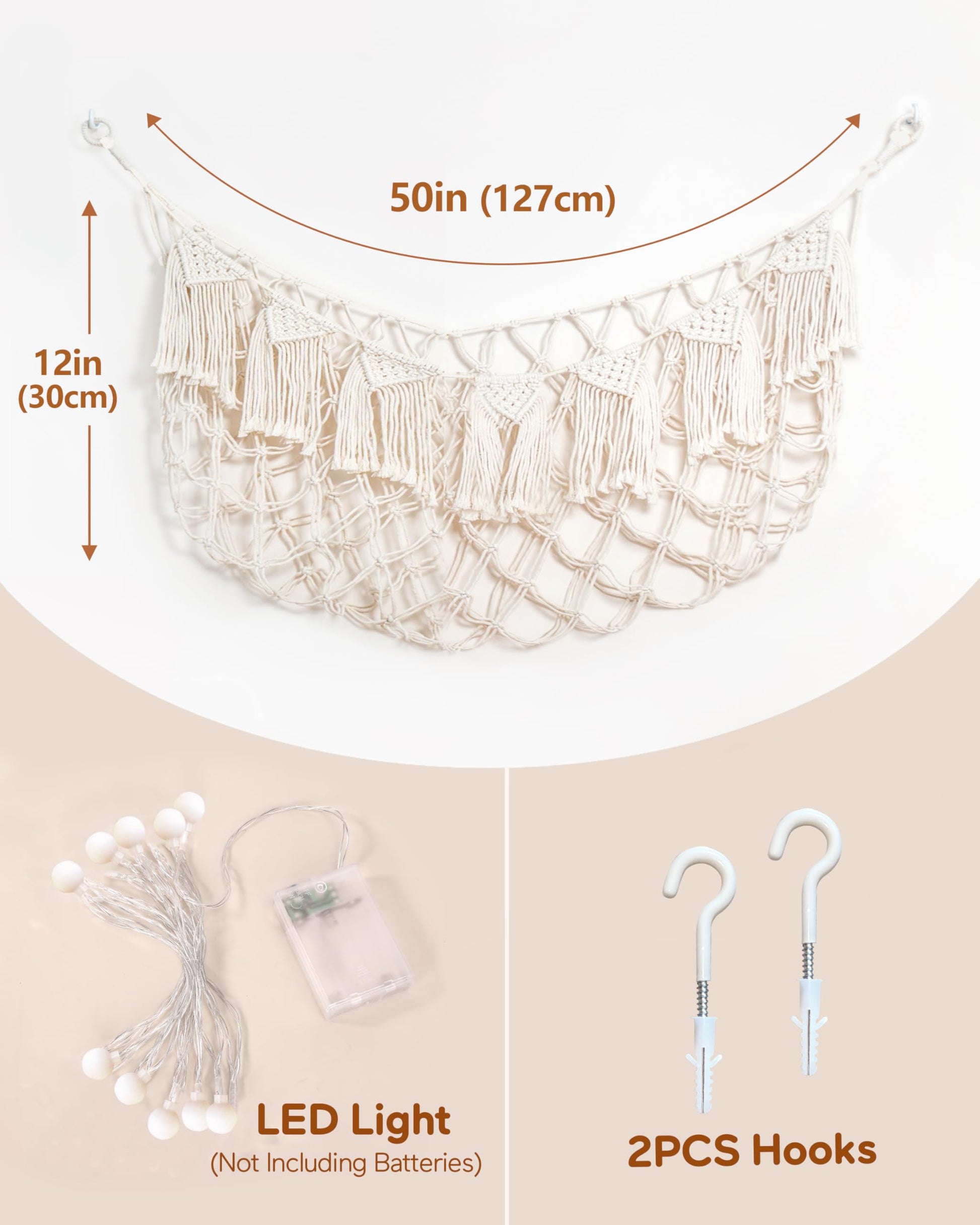 - 【Stylish & Functional】Handwoven in a boho-chic style, this stuffed animal net includes removable string lights. It helps keep your space neat while serving as a beautiful decorative piece to elevate the look of any room