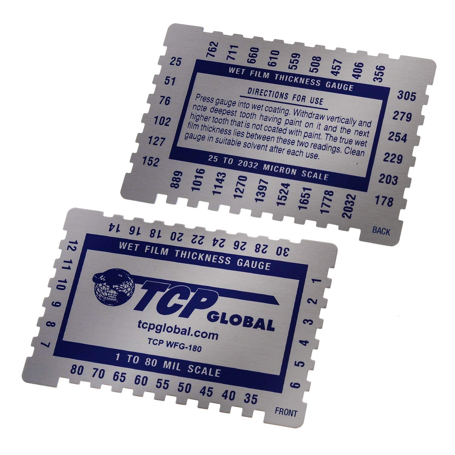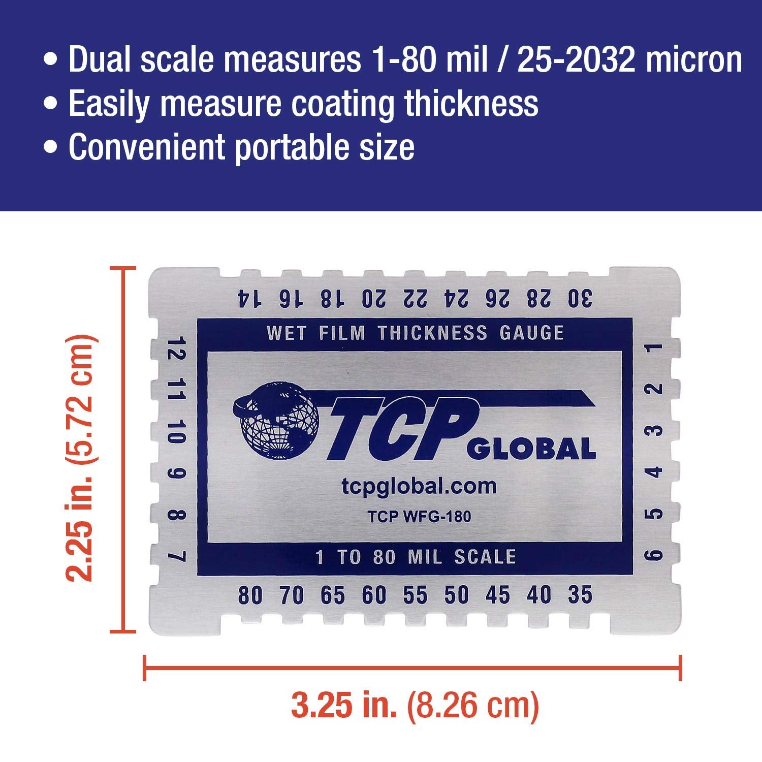 TCP Global Wet Film Thickness Gauge Comb, 1-80 Mil Scale, Step and notched for Paints Resins