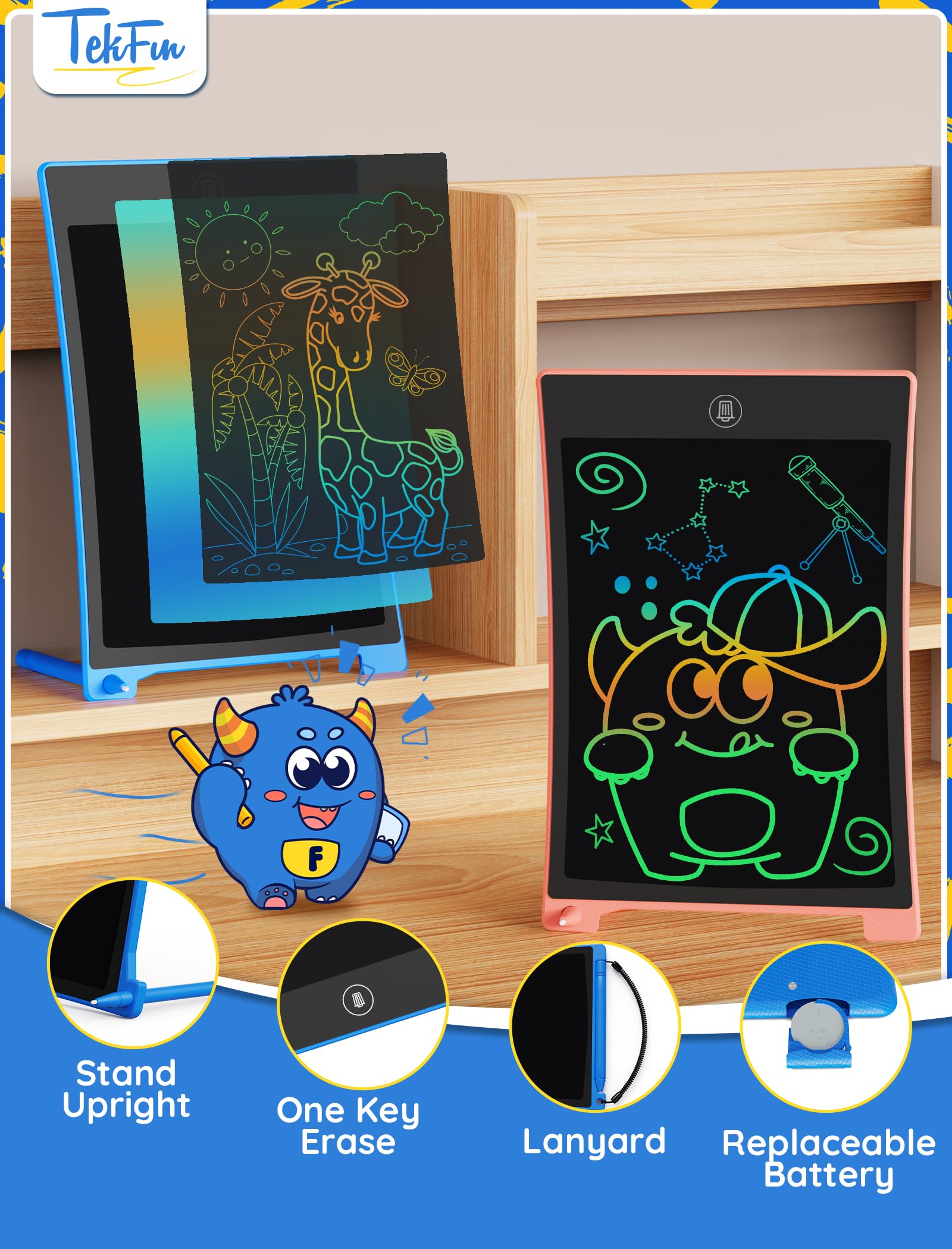 - 🎨2 Packs Doodle Fun: Does your home always burst out of war fighting for a single toy? TEKFUN 2pcs writing tablet could be your family peace envoy and bring kids into the sharing doodle world. When more imaginations collide, more inspiration is sparked. You would absolutely be shocked when your children present their collaborated masterpieces peacefully!