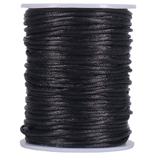Tenn Well Nylon Satin Cord, 295 Feet 2mm Black Nylon String for Jewelry Making, Silky Rattail Cord for Bracelets, Necklaces, Macrame Keychains, Lanyards, Beading