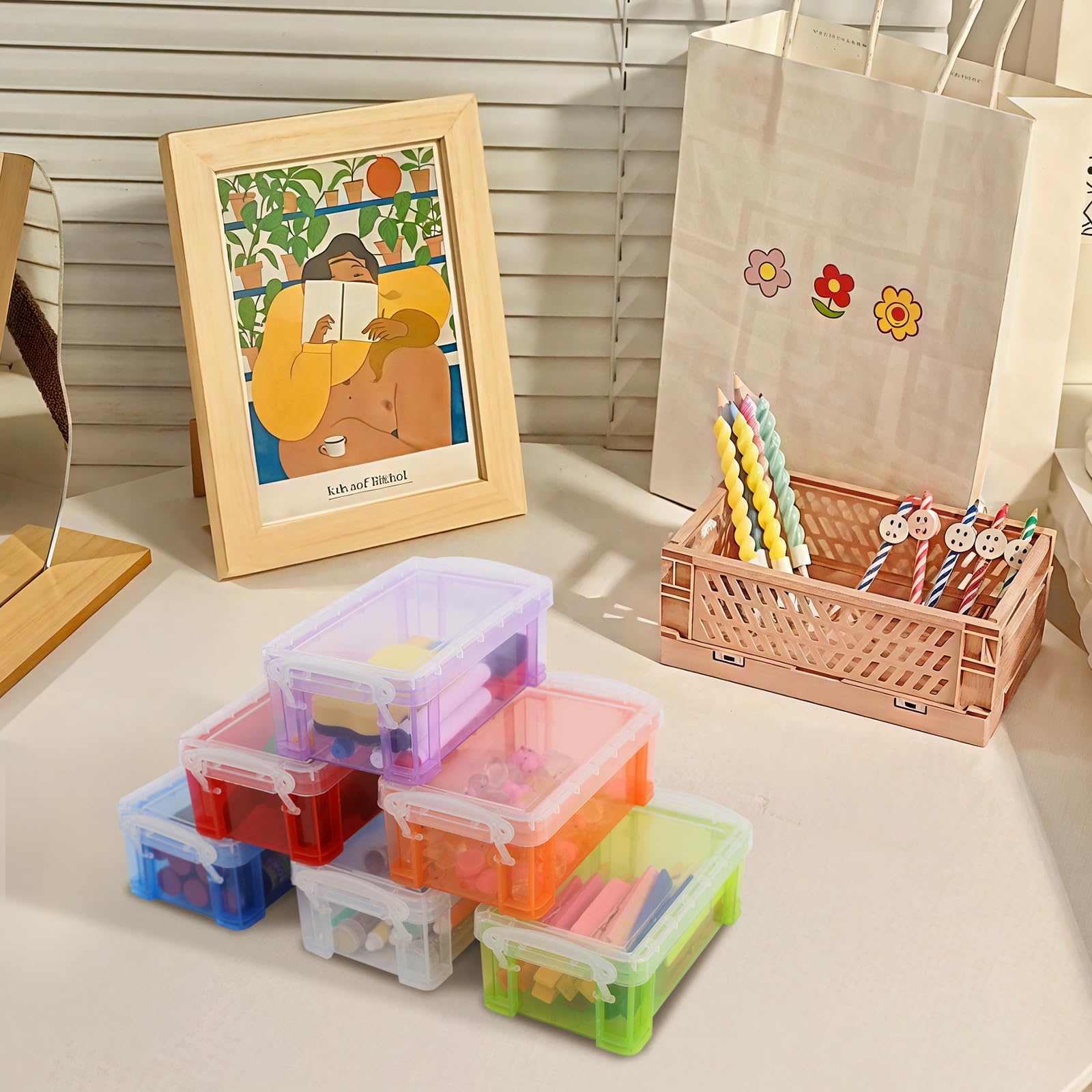 - 【Package Includes】- The small plastic boxes come in 6 different colors: red, orange, purple, blue, white, green. The mini plastic storage box is lightweight and durable, easy to carry.