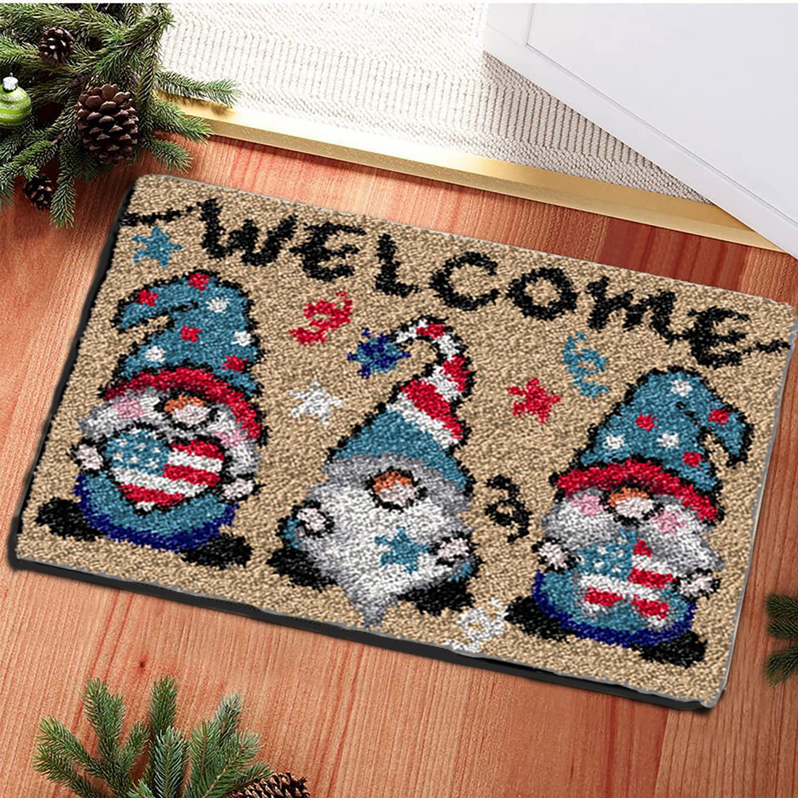 TEZKIM Latch Hook Kits for Adults Kids Christmas Rug Making Kits with Printed Canvas Carpet Tapestry Kits DIY Needlework Doormat Creative Gift Home Decoration 20.5Inch X13.8Inch (Beige)