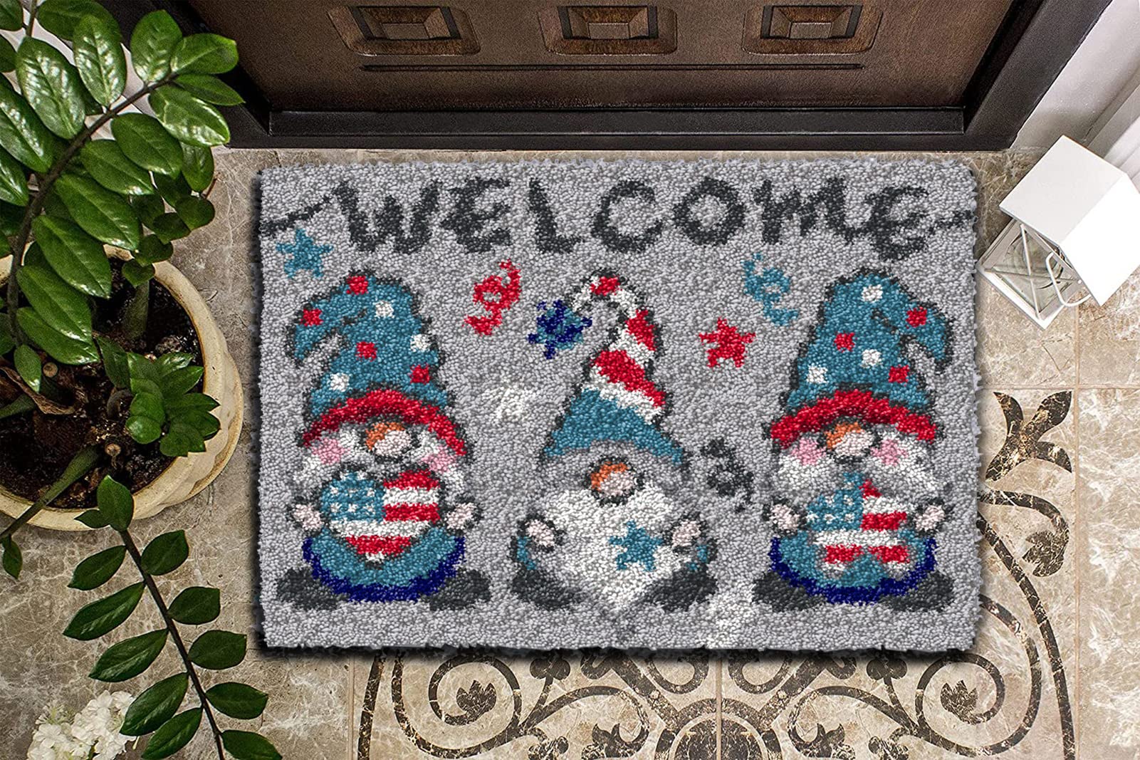 Latch Hook Kits for Adults Kids Tapestry Kits DIY Needlework Doormat Creative Gift Home Decoration 20.5Inch X13.8Inch (Gray)