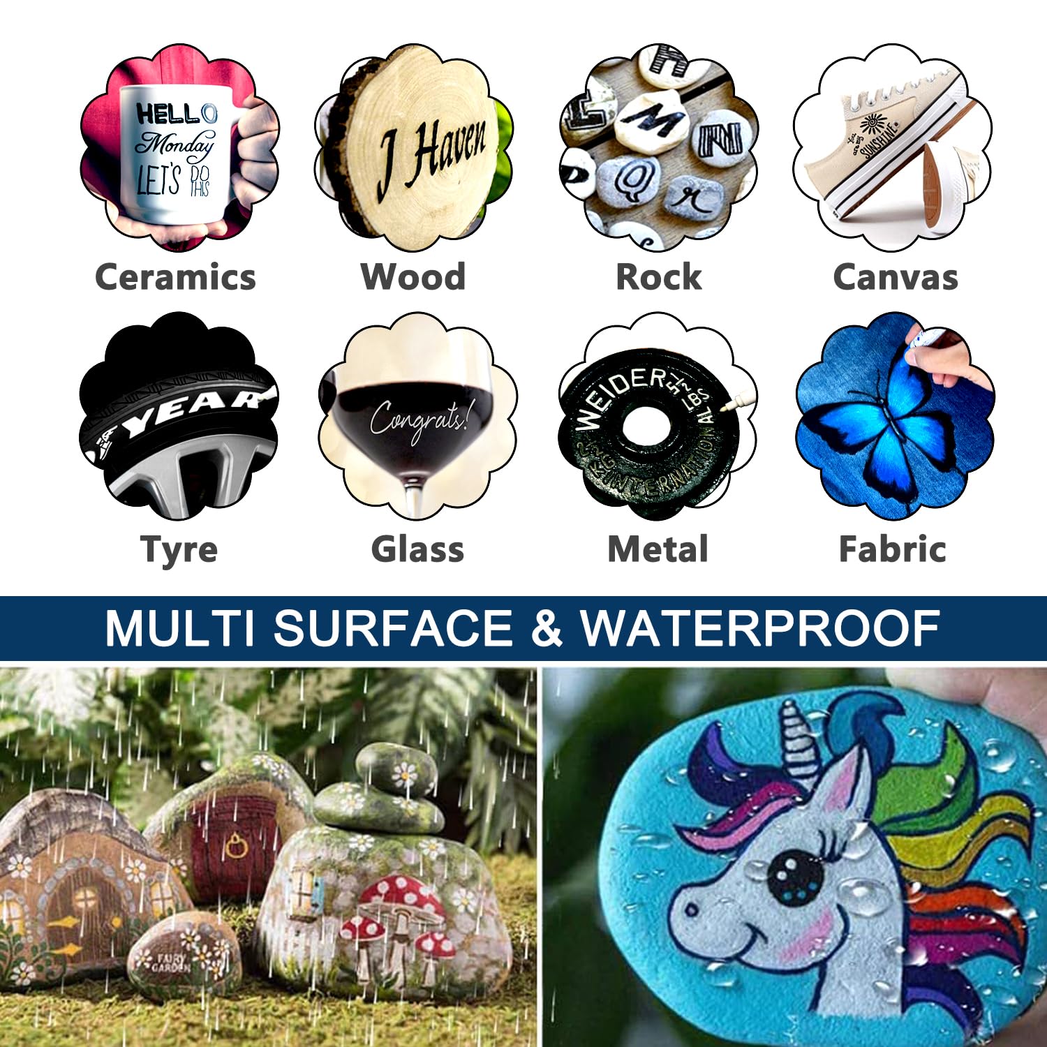 - 【Premium Paint Marker】These paint markers are made of Long-lasting opaque ink, specially formulated with valve-action. Oil-based ink is non-toxic, xylene-free, acid-free. We fill each marker with 5ml of premium ink. Resistant to water, fading, and abrasion.