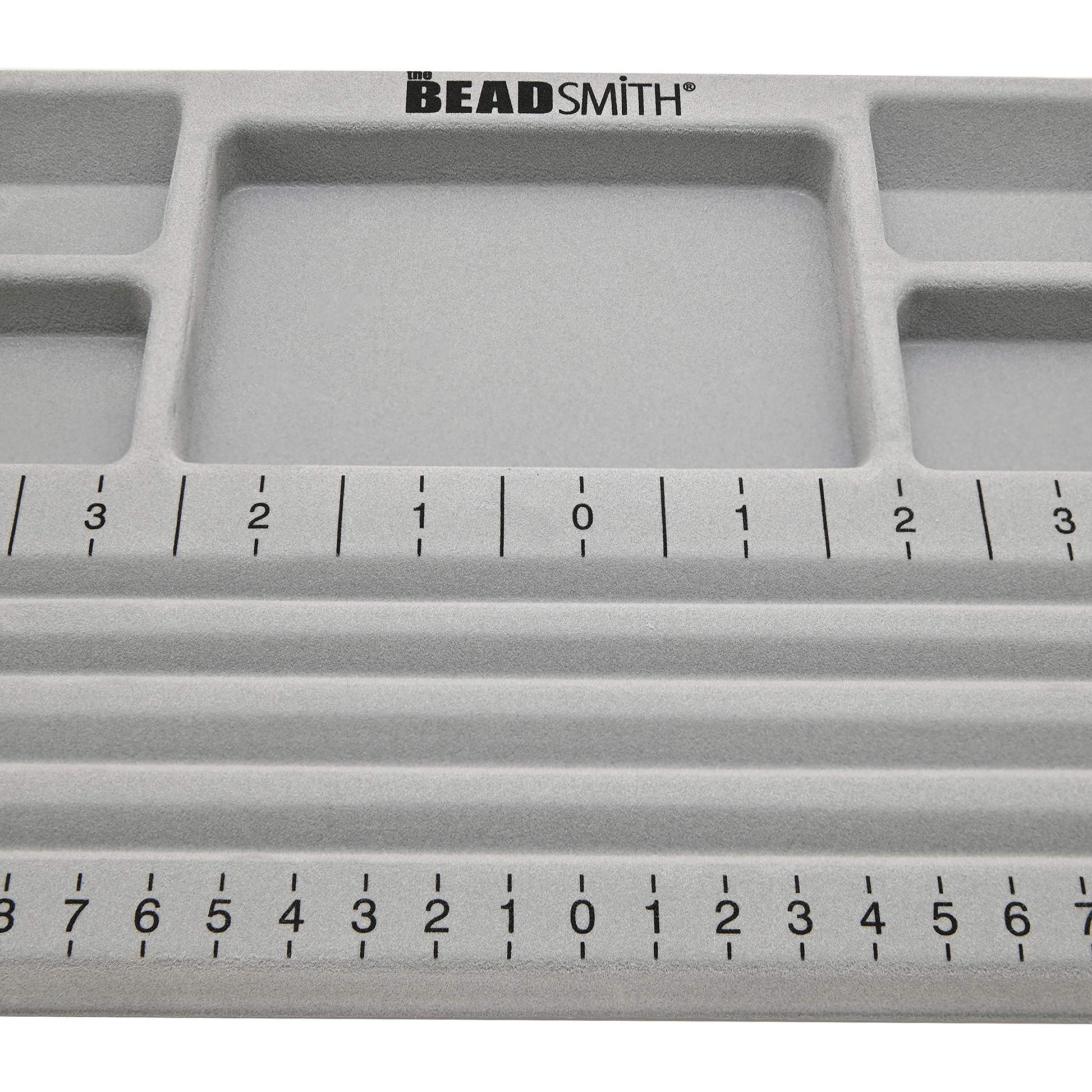 The Beadsmith Mini Bead Board, Grey Flocked, 4 Straight Channels, 5 Recessed Compartments, 7.75 x 11.25 inches, design boards for creating bracelets, necklaces and other jewelry