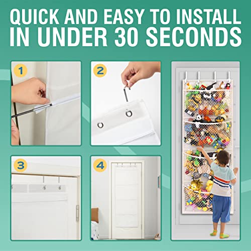 - 🧸 CONVENIENT STUFFED ANIMAL STORAGE - The perfect stuffed animal organizer to easily store and organize your favorite toys in our over the door storage unit. Easy to setup, durable, and allows kids convenient access to their toys. Equipped with breathable mesh pockets keeping your stuffies fresh and clean