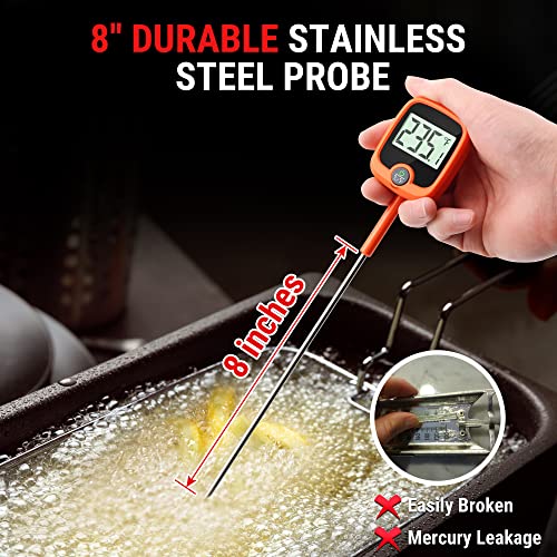 - 8” Durable Probe: The long, stainless steel probe makes for a durable oil thermometer for frying, which is not as easy to break as a glass thermometer. No need to worry about liquid leakage! Also, this thermometer is certified by NSF, which ensures its high quality and safety