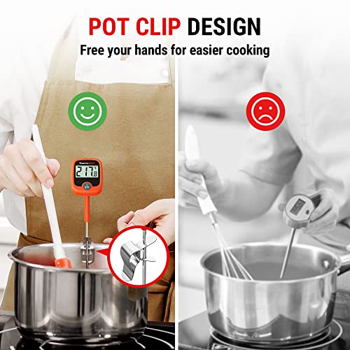 - Pot Clip Design for Safer Operation: This candy thermometer digital with clip can be fixed to the pot so you can free your hands to focus on the cooking, and protect your hands from the hot