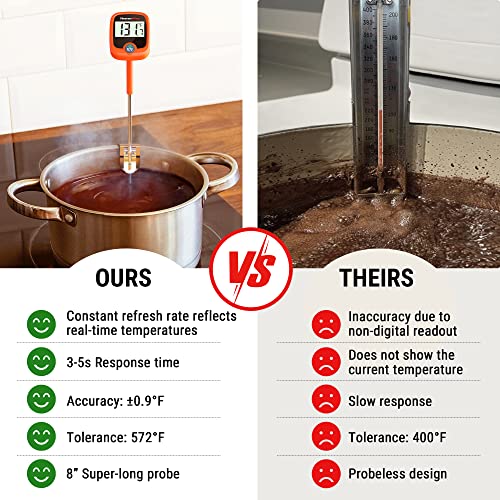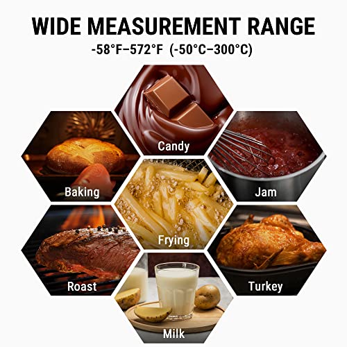 - Fast Read Time & Wide Range: This frying food thermometer provides real-time measurements in 3-5s; With a wide range from -58°F to 572°F, this cooking thermometer is perfect for candy maple syrup grease cheese sugar brewing making