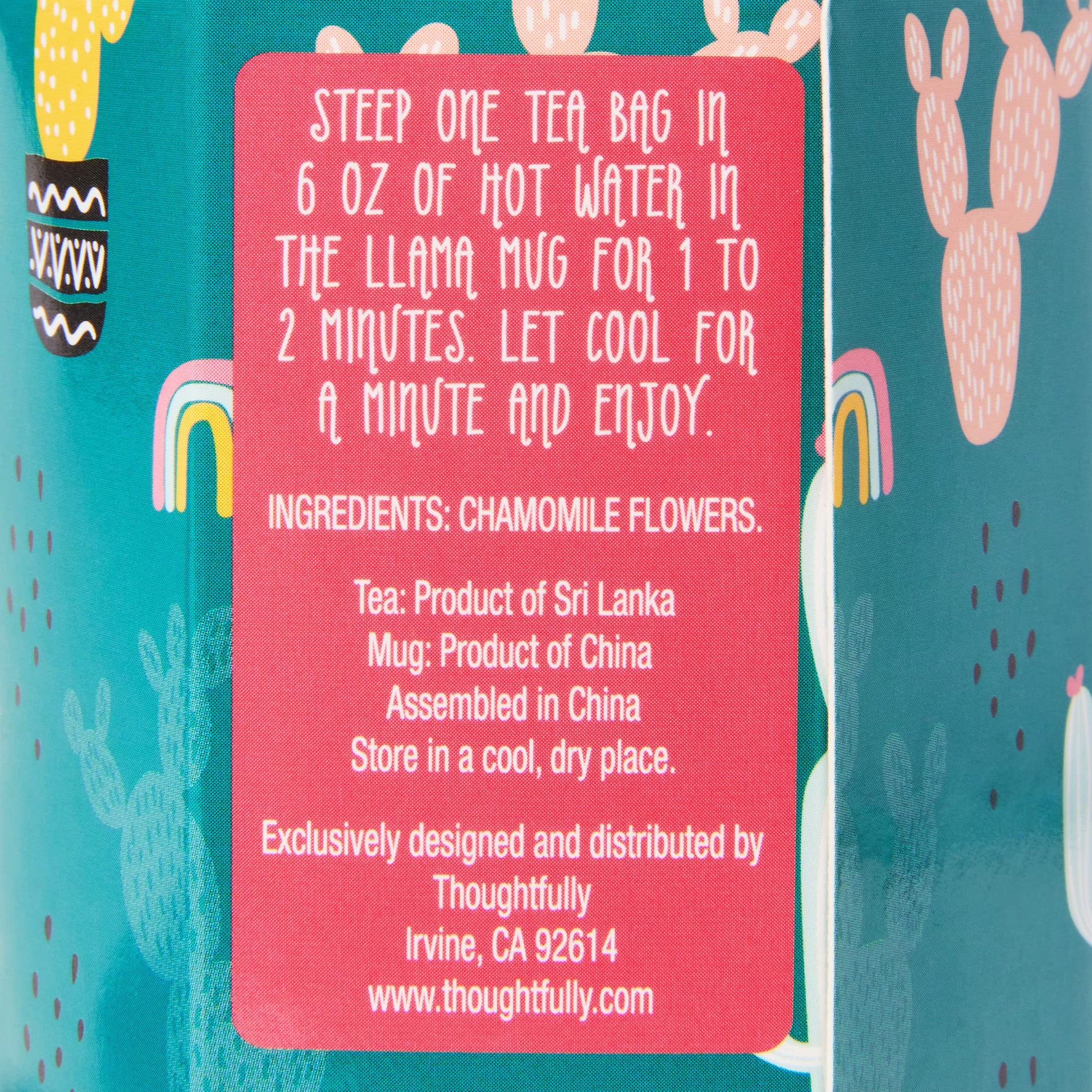- GOURMET TEA - Steep one tea bag in 6 oz of hot water in the Llama mug for 1 to 2 minutes. Let cool for a minute and enjoy