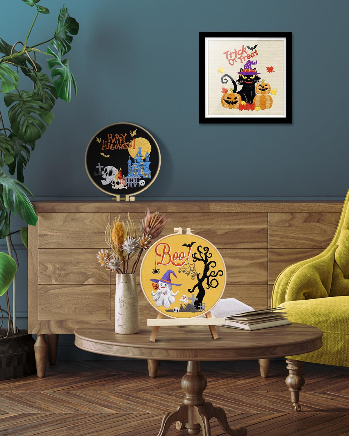 - 【Halloween Embroidery DIY】This cross stitch kits style is perfect for Halloween. Not only can you learn embroidery skills, but these handmade embroidery kits can also accompany you a surprising and exciting Halloween.