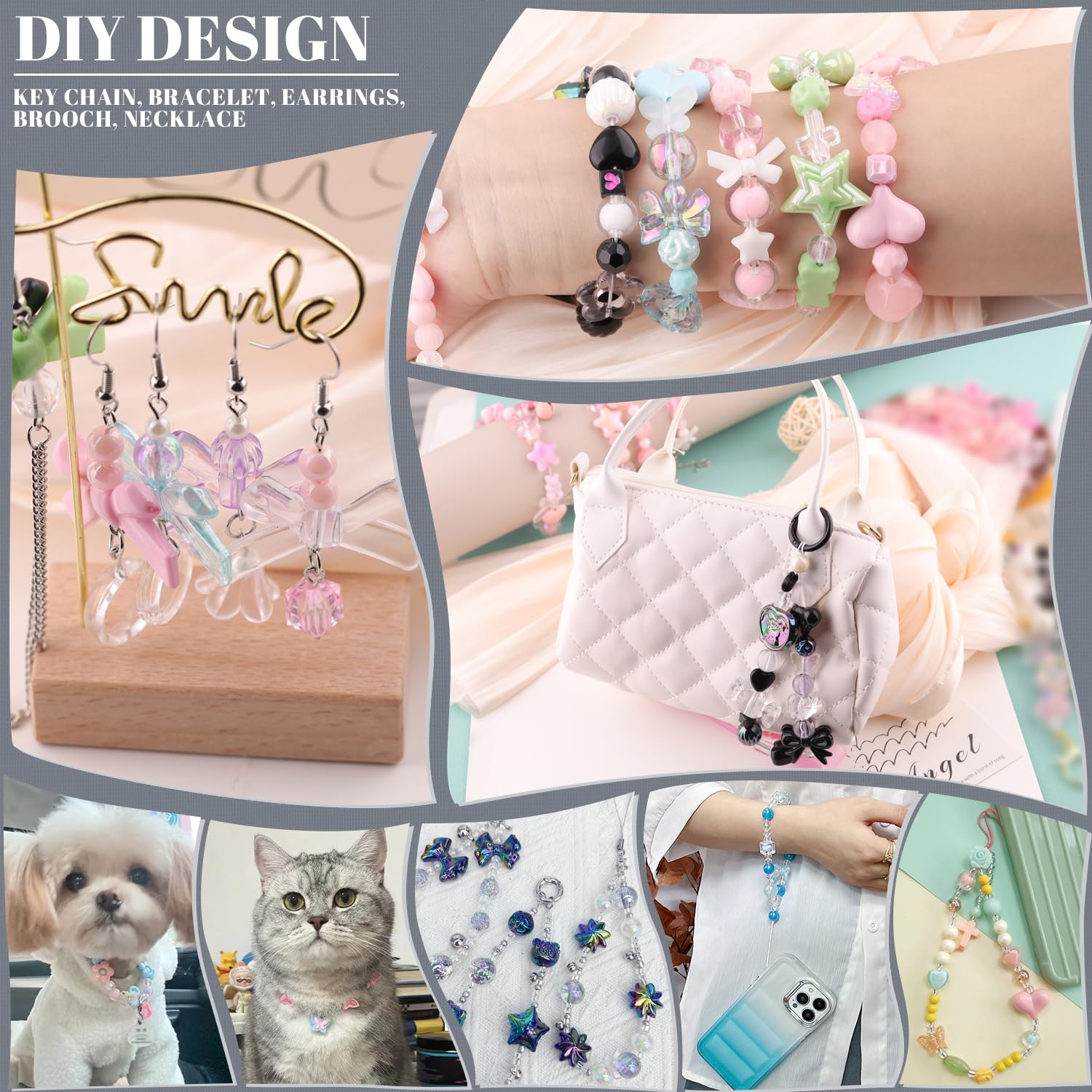 - WIDE USAGE - Ideal for creating cute necklaces, bracelets, earrings, sun catchers, keychains, anklets, and accessories for phones and bags. They also pair well with other types of beads like glass, silicone, crystal, pony, metal or clay beads