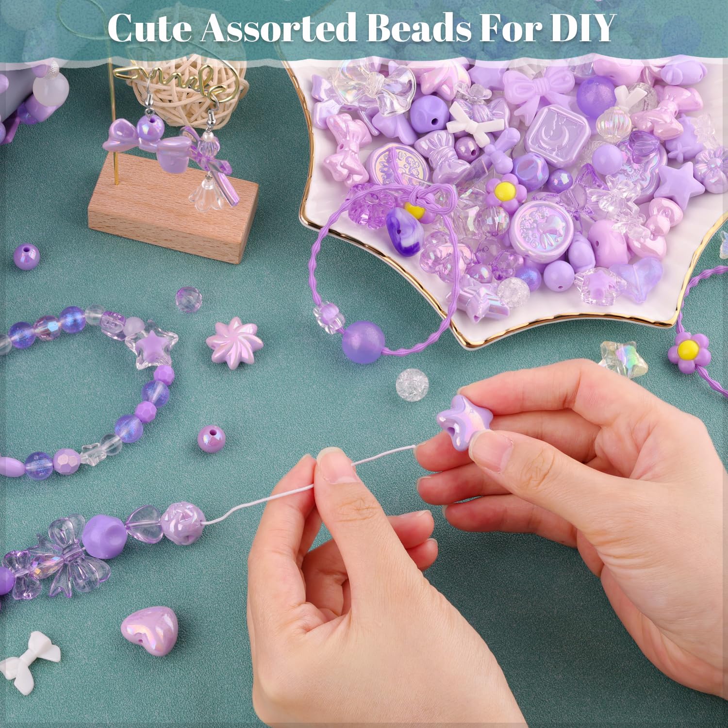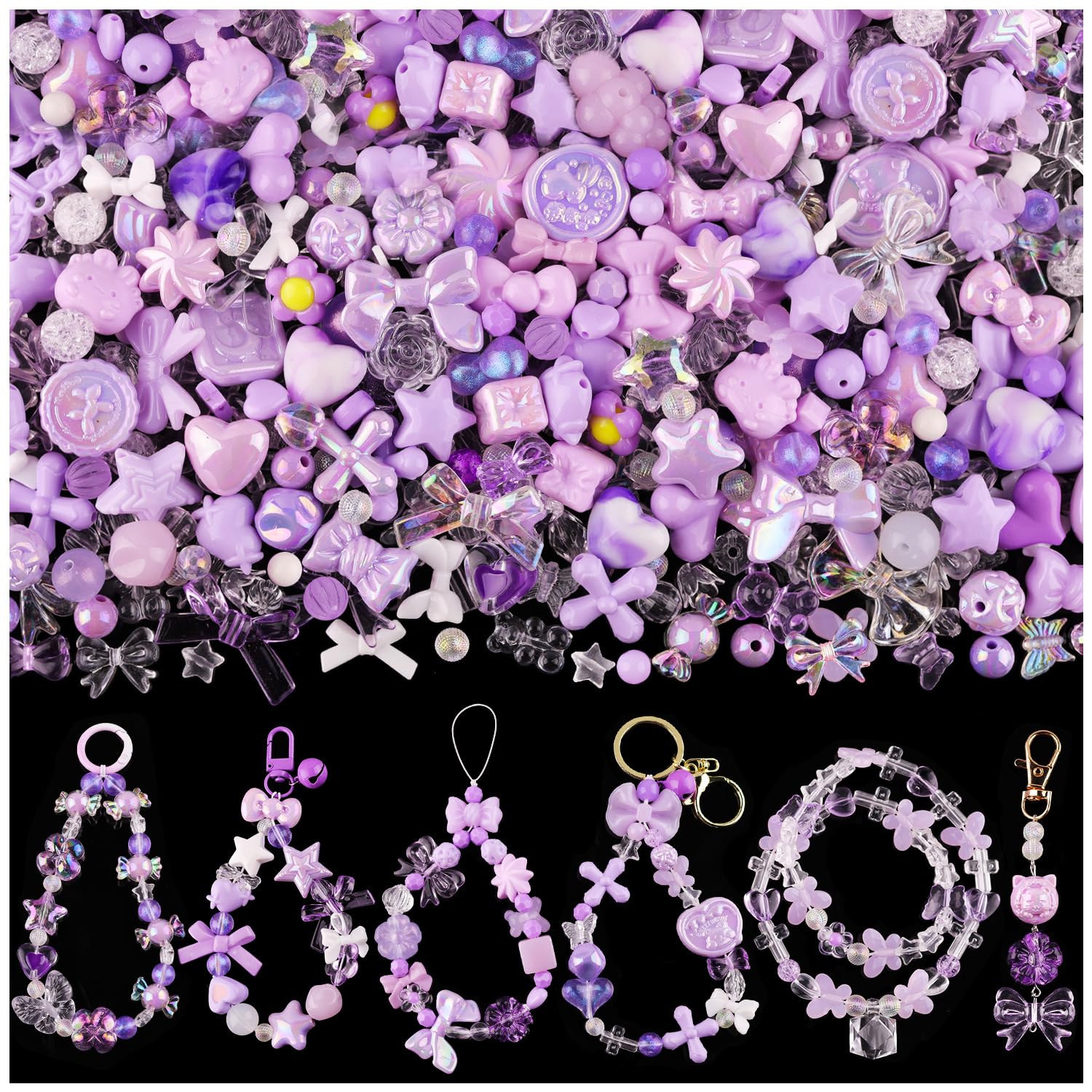 - PACKAGE CONTENT - Includes 150g of lilac assorted beads (170-230 pcs),enough to fulfill your DIY ideas.This set features transparent, jelly, iridescent, glitter and solid color effects. Along with shapes like hearts,butterflies,bows,gummy bears and more