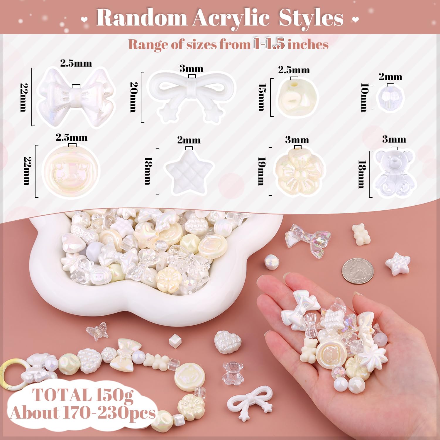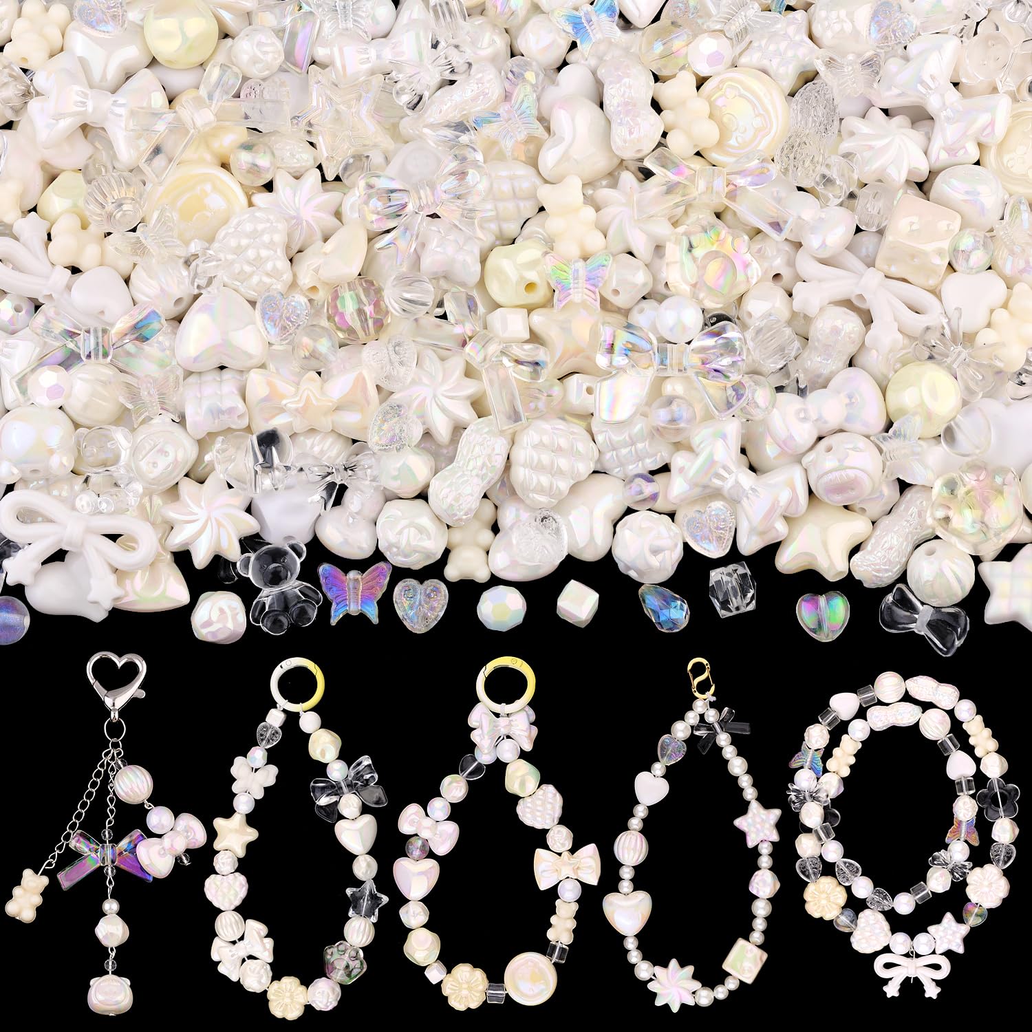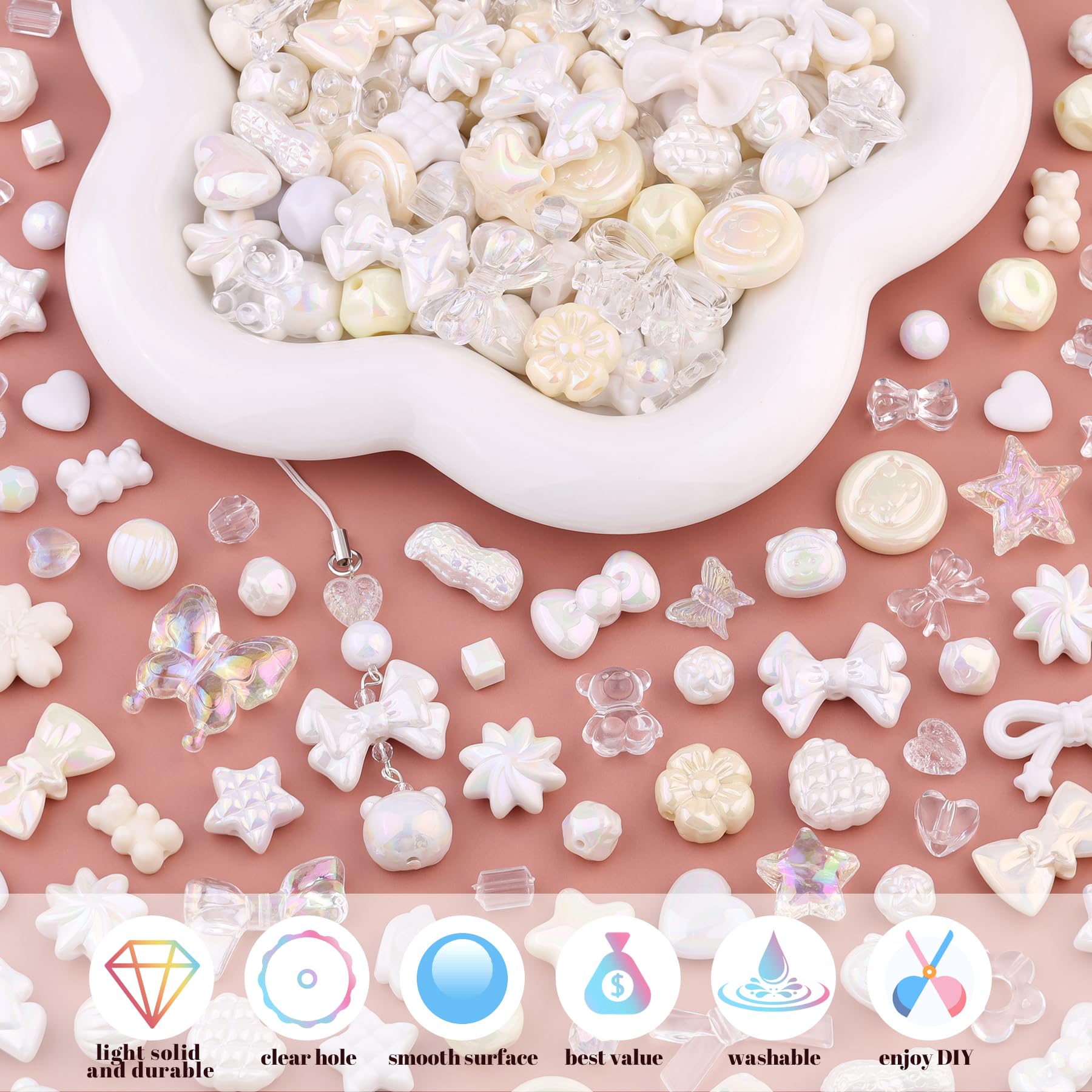 - PACKAGE CONTENT - Includes 150g of white assorted beads (170-230 pcs),enough to fulfill your DIY ideas.This set features transparent, jelly, iridescent, glitter and solid color effects. Along with shapes like hearts, butterflies, bows,gummy bears and more