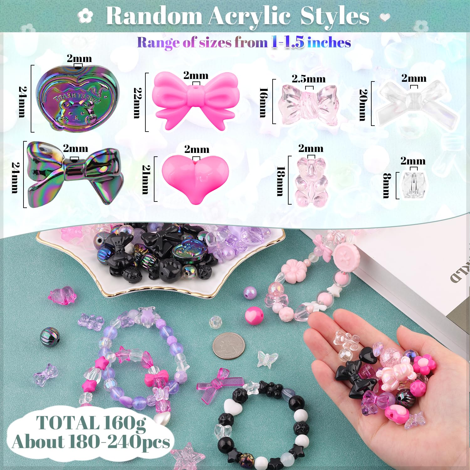 TINKRSTUFF Assorted 180-240PCS Acrylic Beads for Bracelet Making,Flower Bow Butterfly Candy GummyBear Kawaii Aesthetic Bracelet Charms, Cute Beads for Jewelry Making Necklace Keychain Phone Charms DIY