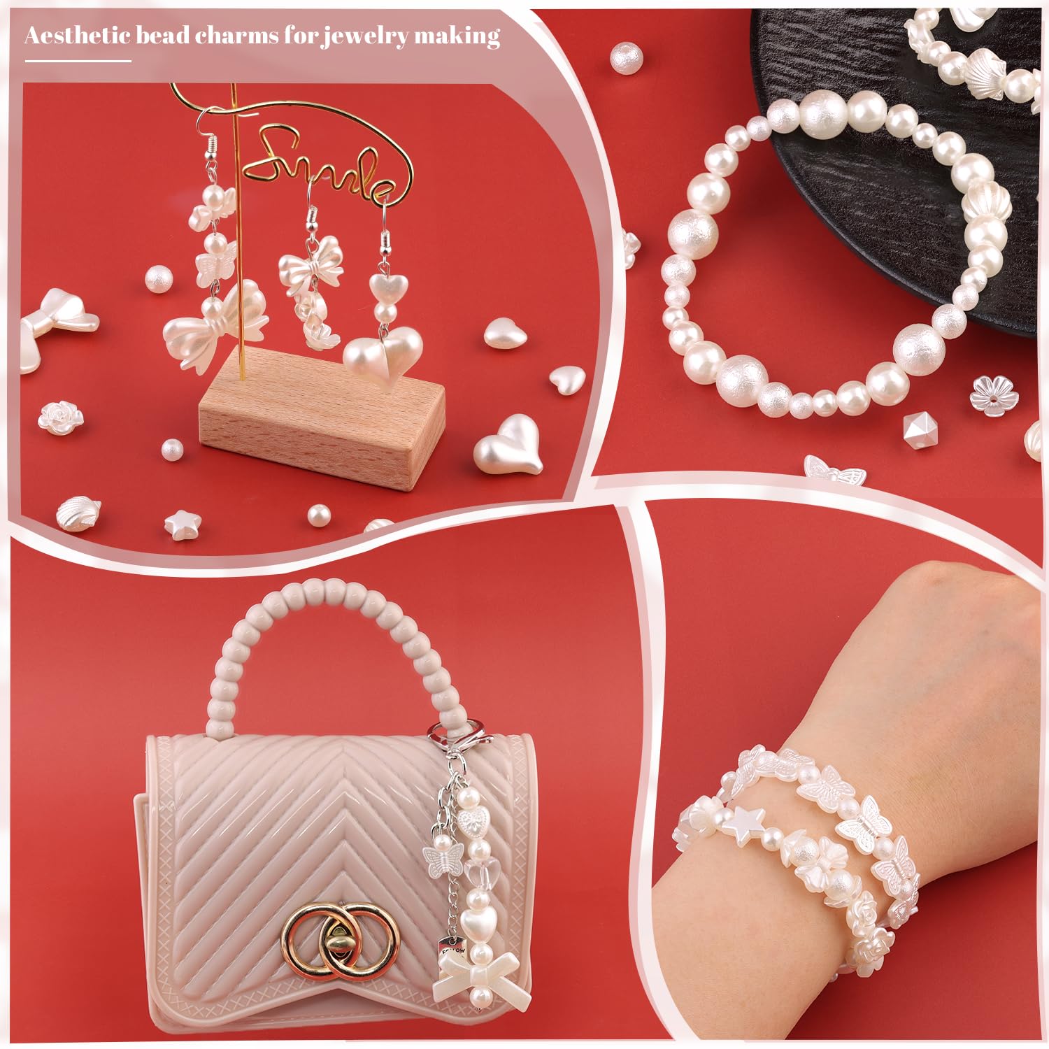 TINKRSTUFF Assorted 270-320PCS Mix ABS Imitation Pearl Beads for Bracelet Making, Bow Butterfly Heart Kawaii Aesthetic Acrylic Beads,Cute Beads for Jewelry Making DIY Necklace Keychain Phone Charms