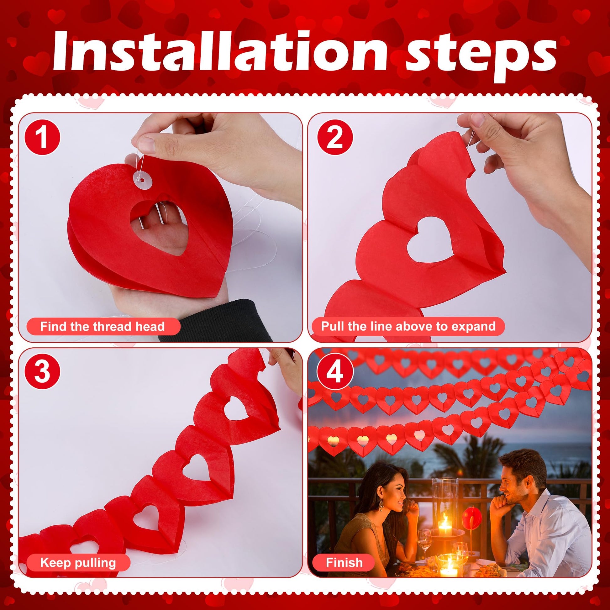 - 100 Ft in total: You will have 10 red heart banner, and each 10 feet long. The size of a single heart is 7 inches, meeting your decorative needs and matching different styles.