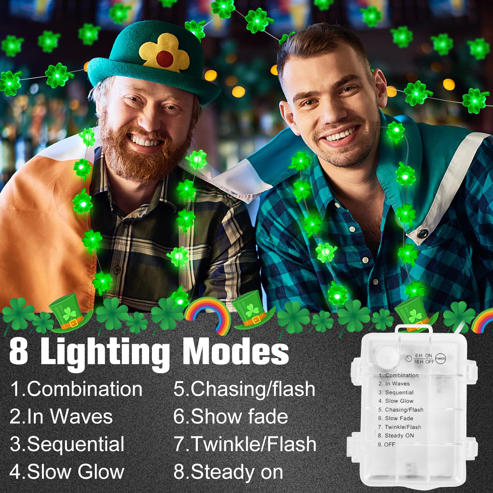 - 【Shamrock String Light decorations】13Ft 50LEDs 3D Shamrock String Light.The string lights add festival atmosphere to St Patricks Day Thanksgiving Halloween Christmas Birthday Easter Wedding Birthday Mother's Day Anniversary or other special events.
