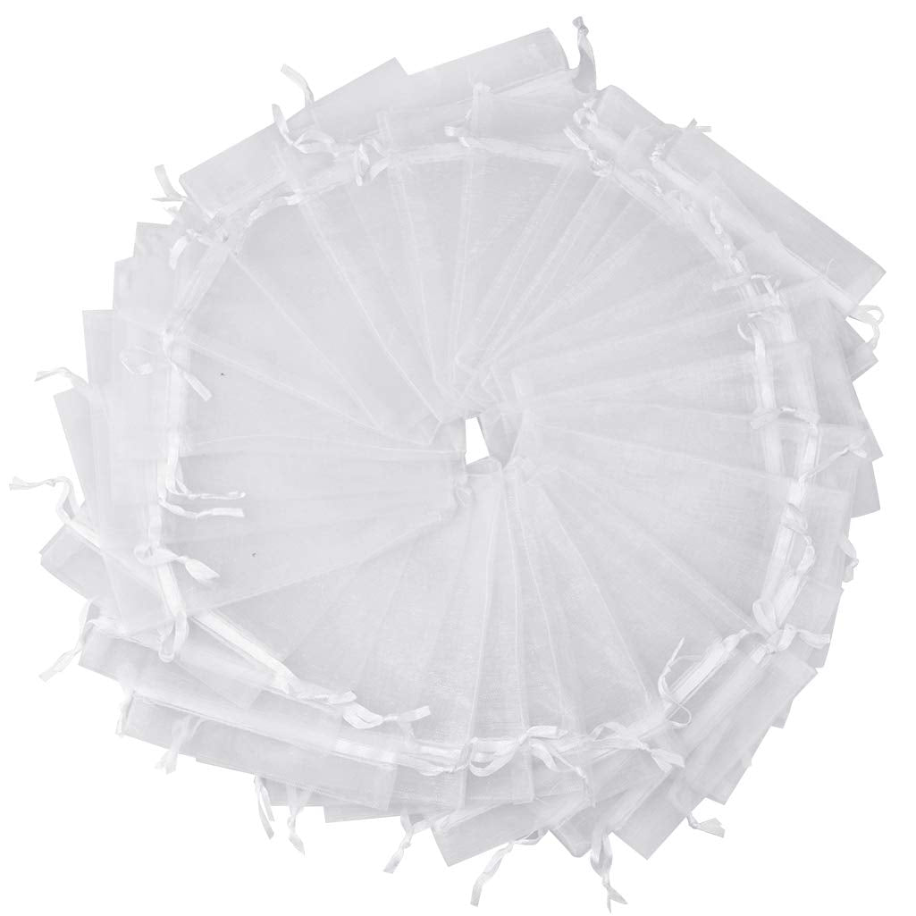 Tojwi 50pcs Organza Bags-Mix Color 3.54''x4.33''(9x11cm) Satin Drawstring Organza Pouch Wedding Party Favor Gift Bag Jewelry Watch Bags (White)