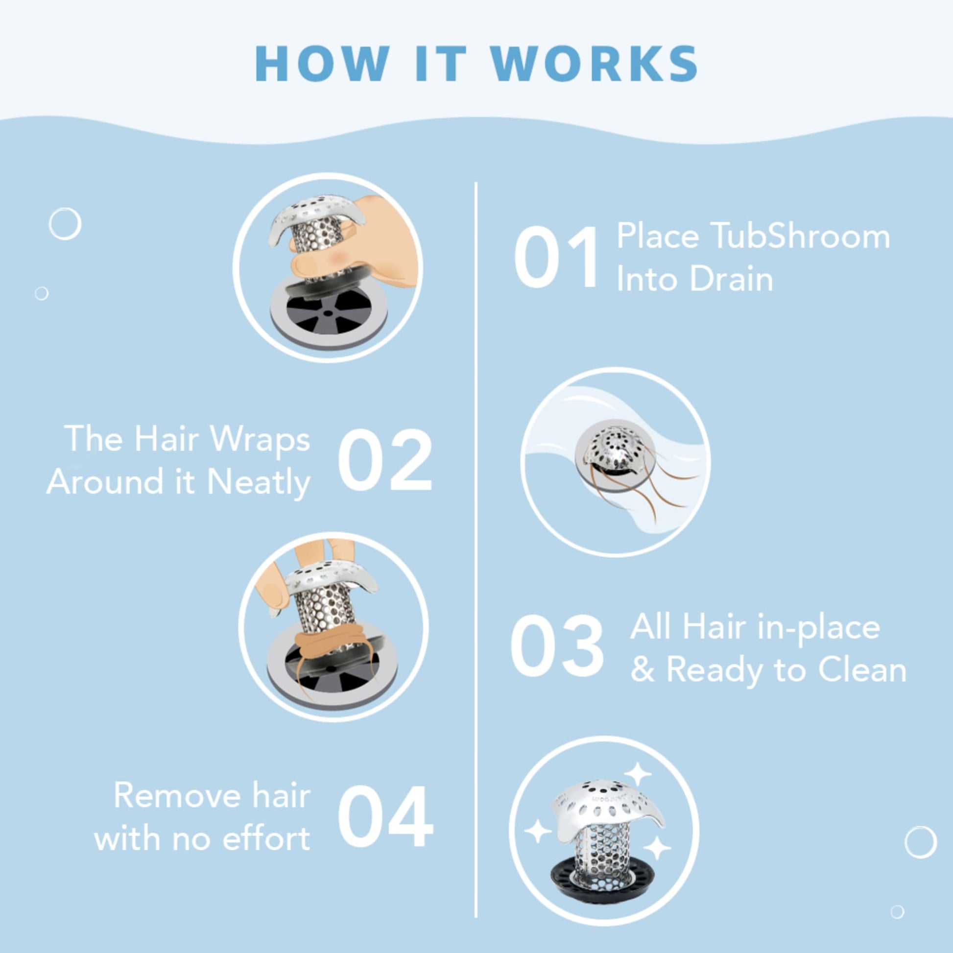 TubShroom Ultra Revolutionary Bath Tub Drain Protector Hair Catcher/Strainer/Snare, Stainless Steel, Stainless Combo
