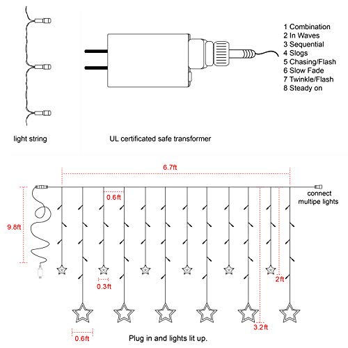 Star curtain lights with 12 Stars 138 LEDs, romantic atmosphere. Safe, power-saving and eco-friendly. High-brightness white string light, but not dazzling.