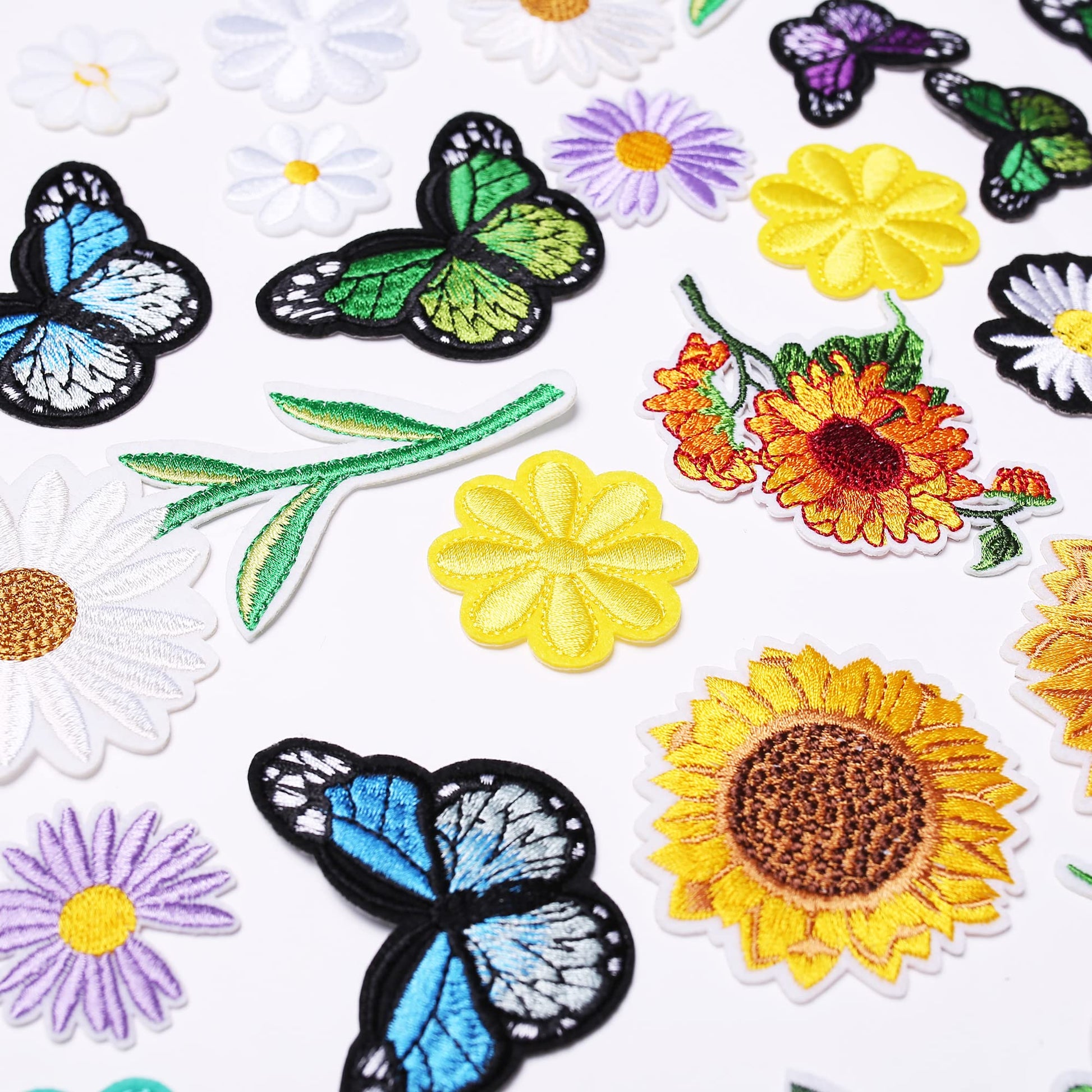 Iron on Flower and Butterfly Patches, Embroidered Iron on/Sew on Decorative Patches for Clothing, Pants, Backpacks, Hats, Jeans, DIY Accessories.