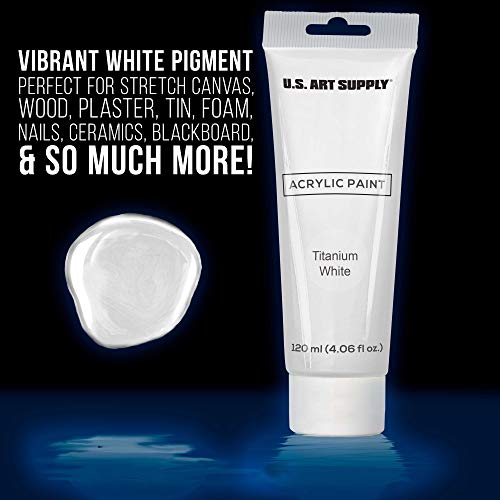 U.S. Art Supply Artists Acrylic Color Paint, Titanium White, 2 Extra-Large 120ml Tubes - Professional Grade, Excellent Tinting Strength, Mixable - Portrait Painting, Canvas, Wood - Student, Beginner