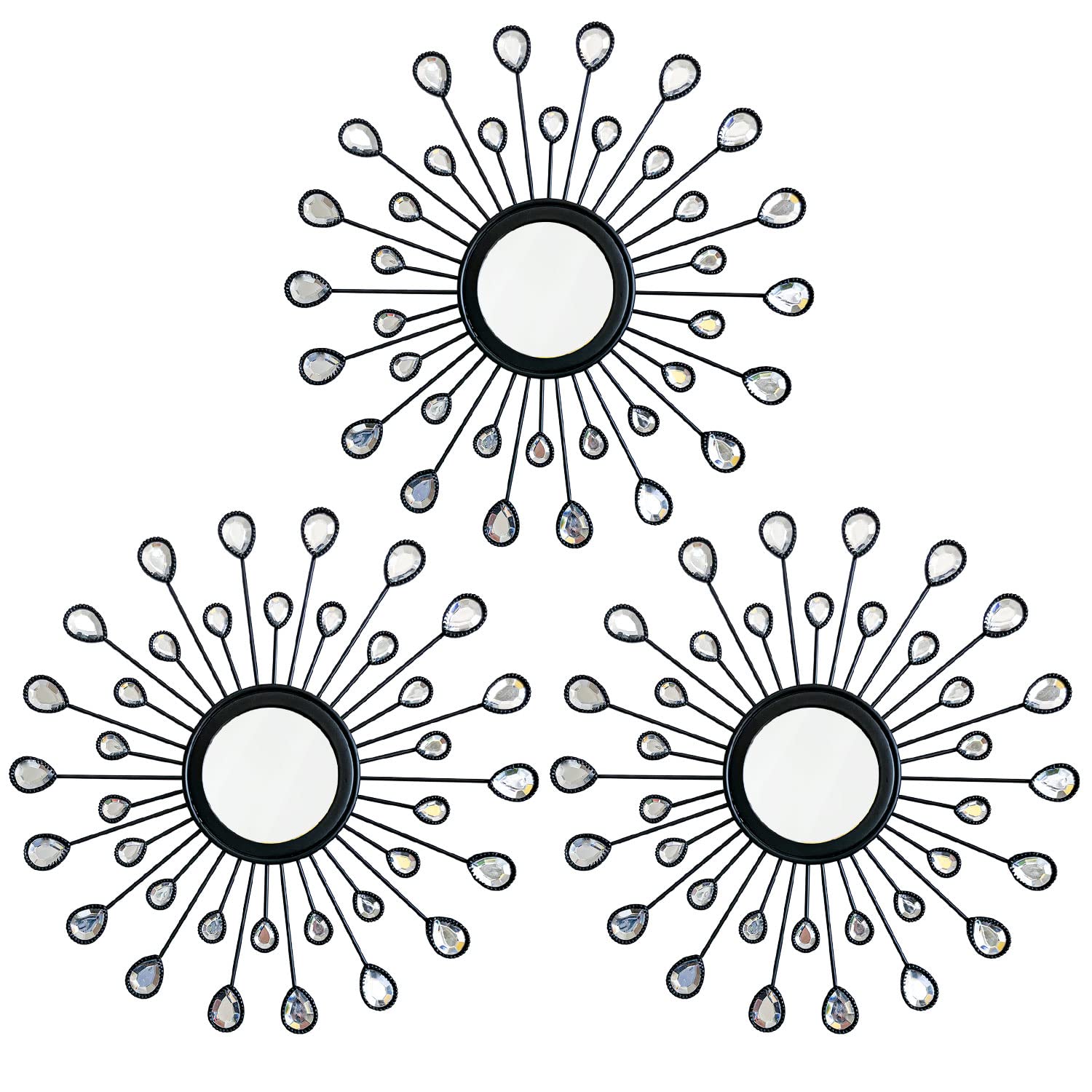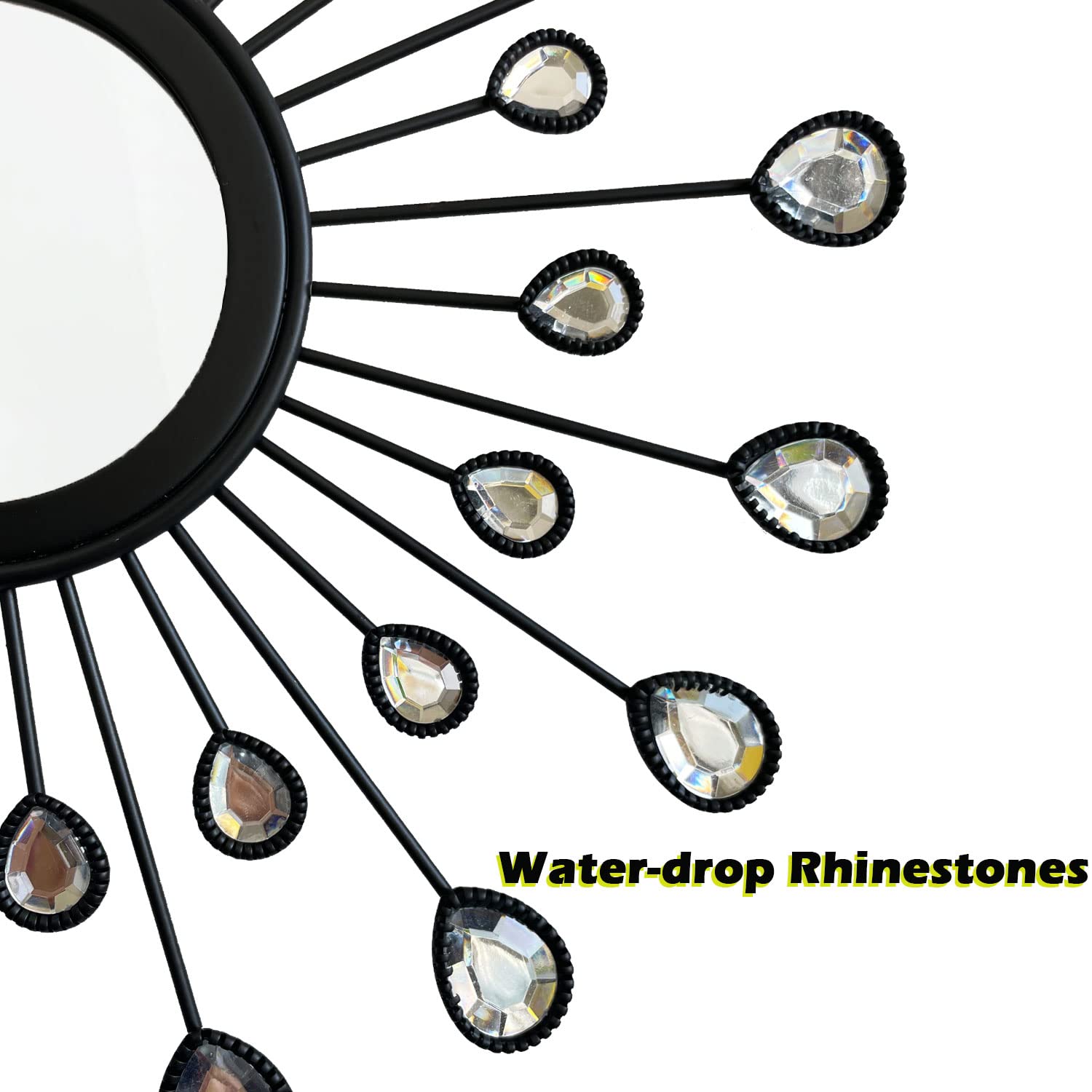 Uaussi 3 Pack Metal Wall Mirrors Rhinestones Starburst Mirror Set Bling Home Decorative Hanging Wall Art for Living Room Bedroom-Water-Drop Burst Black