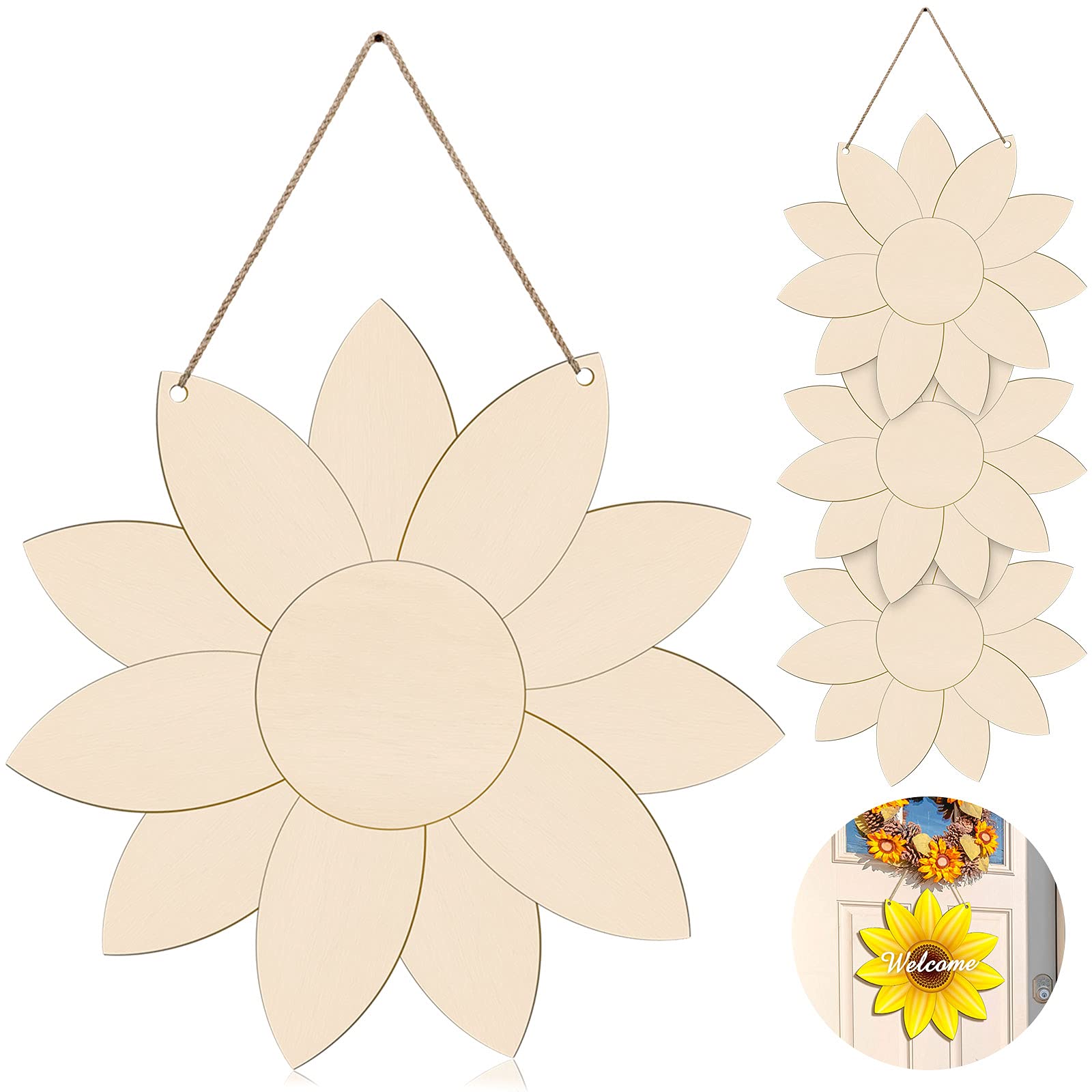 Unfinished Sunflower Wood Cutout Sunflower Sign Cutouts Sunflower Wood Door Hanger with 2.2 Yards Natural Rope for DIY Painting Hanging Welcome Sign Spring Summer Home Decoration (4)