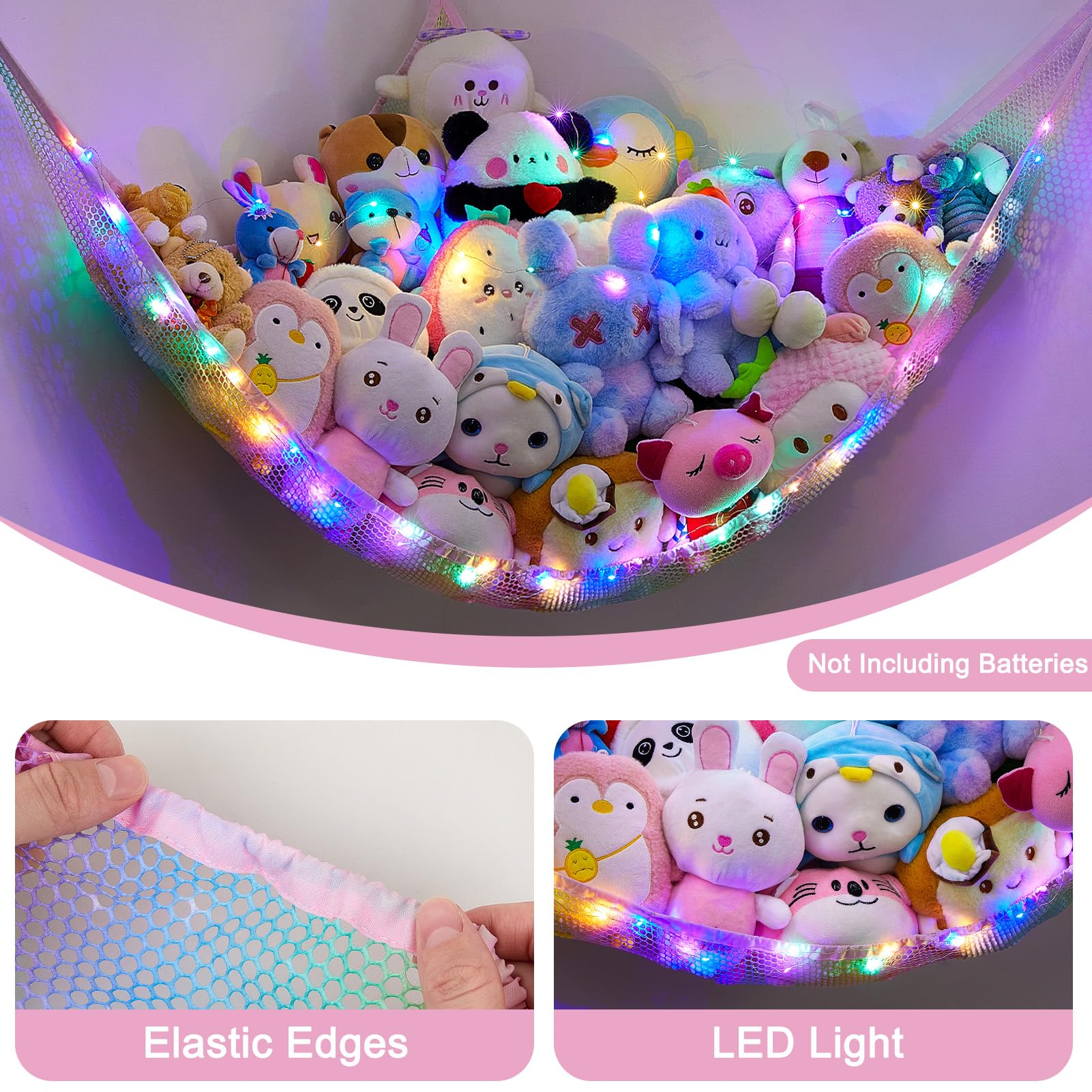 - Toy Hammock: Our stuffed animals net or hammock can be a decoration for your kidsroom; Come with LED light, can add a cozy and fun atmosphere