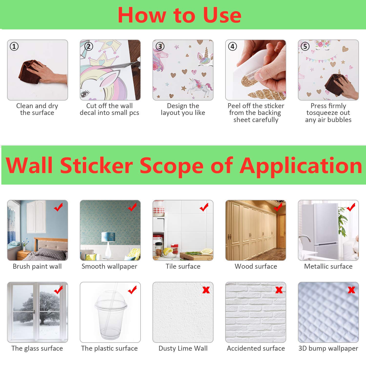 - 🦄【PACKAGE INCLUDE】-- 12"x16"x 4Pcs per sheet,2 Styles Unicorns with hearts, stars which can be attached to different walls, or you can DIY yourself to create a wonderful world of unicorn
